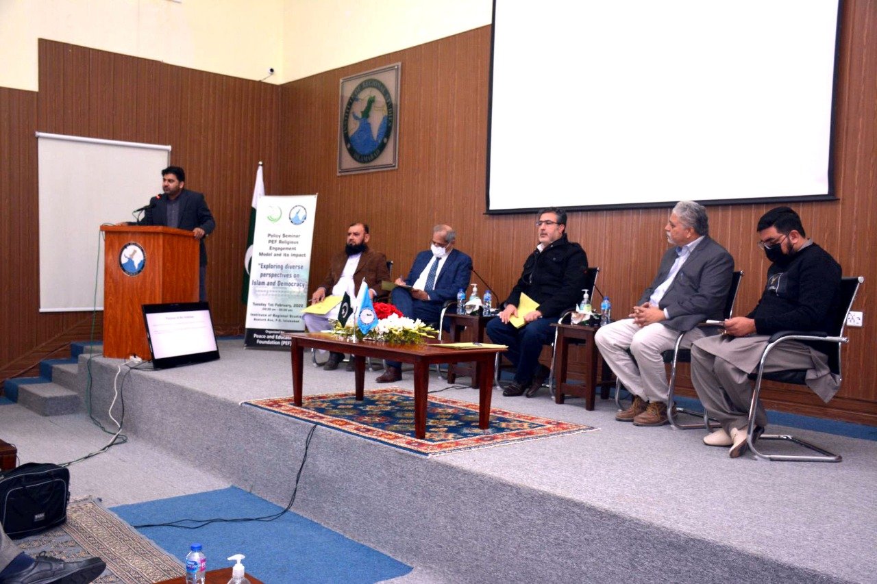The Peace and Education Foundation (PEF) organized a one-day policy seminar on Exploring diverse perspectives on Islam and Democracy in Islamabad on February 1, 2022. The event was organized in collaboration with Institute of Regional Studies.