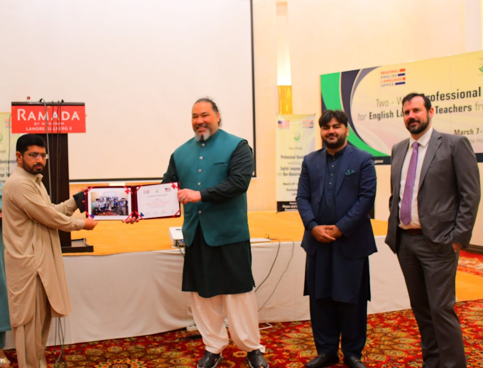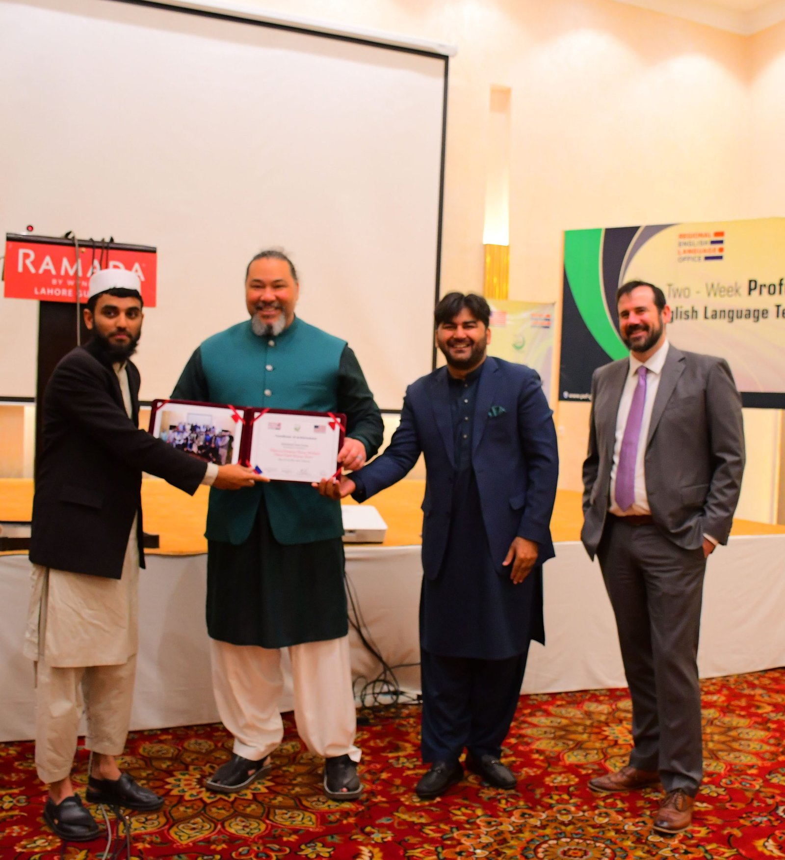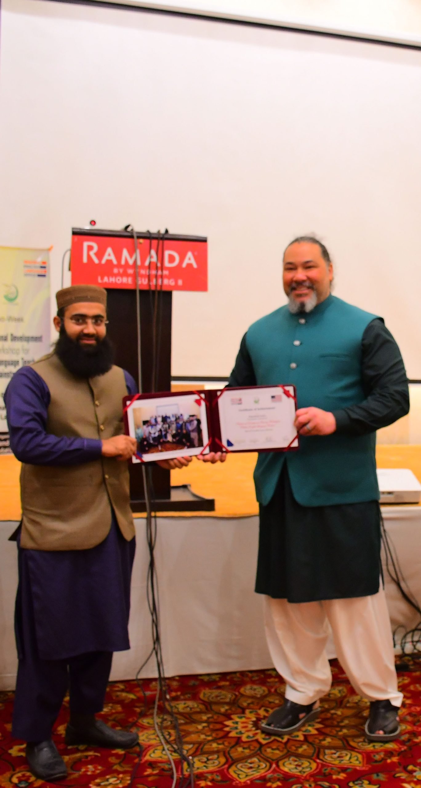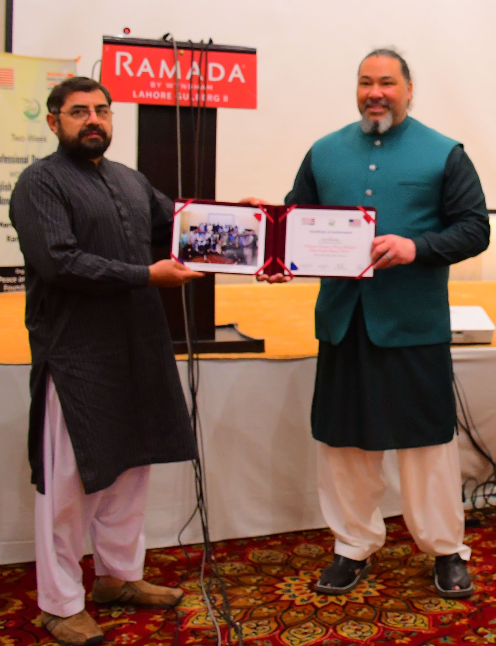 The U.S. Consul General William K. Makaneole, Deputy Public Affairs Officer Reid Howell, and English Programs Manager-Punjab Dr. Muhammad Iqbal participated in the opening and closing ceremonies. The U.S. Consul General distributed the certificates among the participants. At the end of the workshop the honorable Mr. William K. Makaneole, congratulated the trained teachers on successfully completing a two-week training program. Mr. William said, “English is an international language which opens the door of dialogue and discussion and in return help people to understand and appreciate different religions and culture. English language is a great tool all including religious scholars for teaching, preaching and interfaith dialogue to create interfaith harmony and tolerance which will ultimately help us for global peace.”