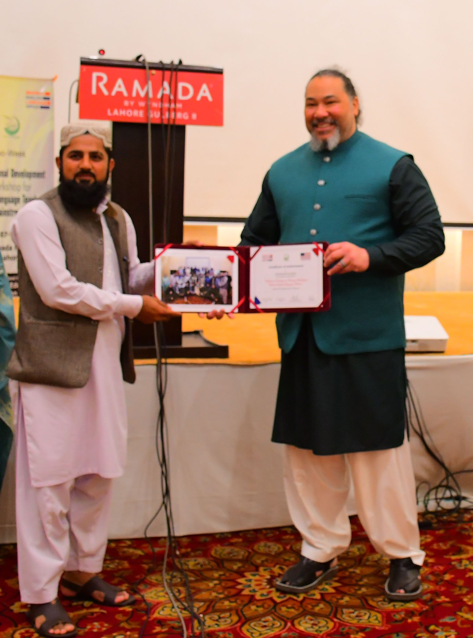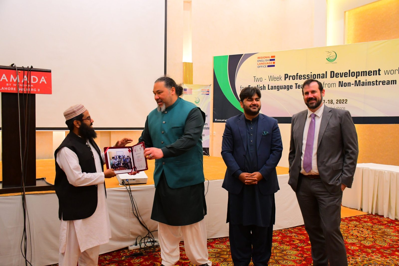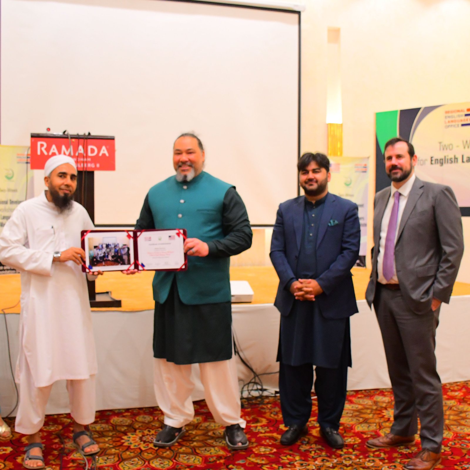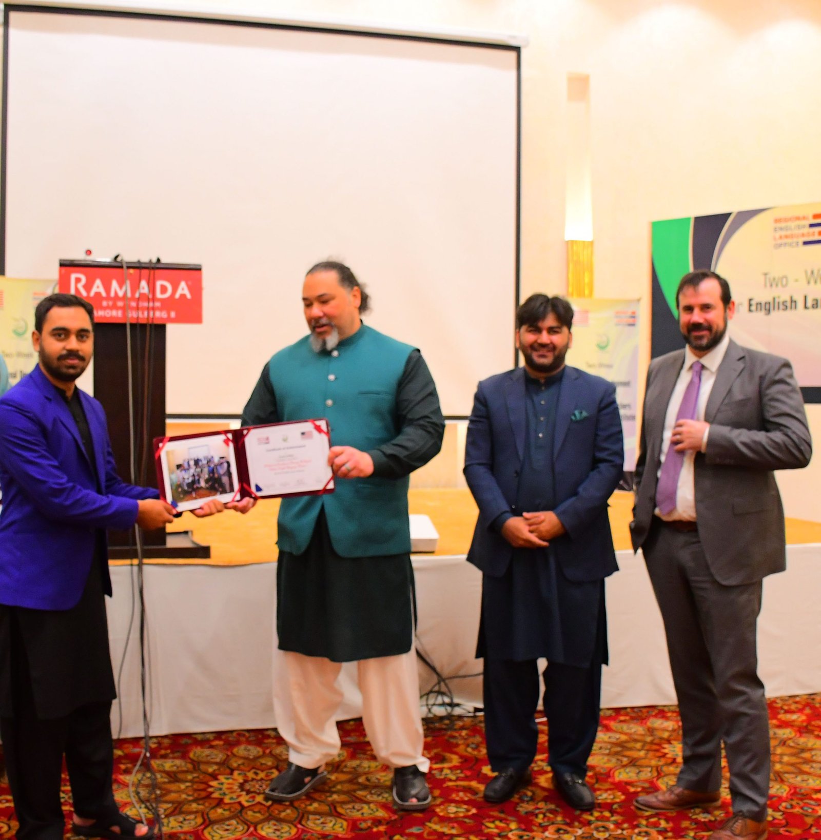The U.S. Consul General William K. Makaneole, Deputy Public Affairs Officer Reid Howell, and English Programs Manager-Punjab Dr. Muhammad Iqbal participated in the opening and closing ceremonies. The U.S. Consul General distributed the certificates among the participants. At the end of the workshop the honorable Mr. William K. Makaneole, congratulated the trained teachers on successfully completing a two-week training program. Mr. William said, “English is an international language which opens the door of dialogue and discussion and in return help people to understand and appreciate different religions and culture. English language is a great tool all including religious scholars for teaching, preaching and interfaith dialogue to create interfaith harmony and tolerance which will ultimately help us for global peace.”
