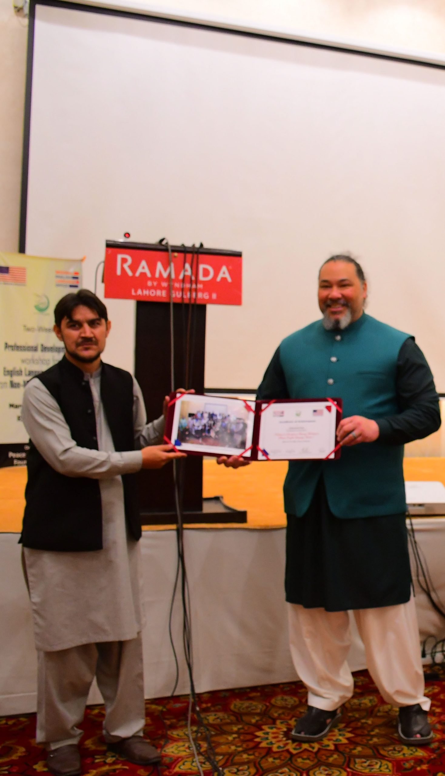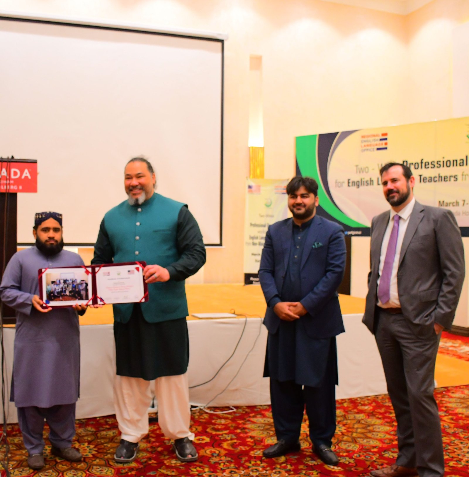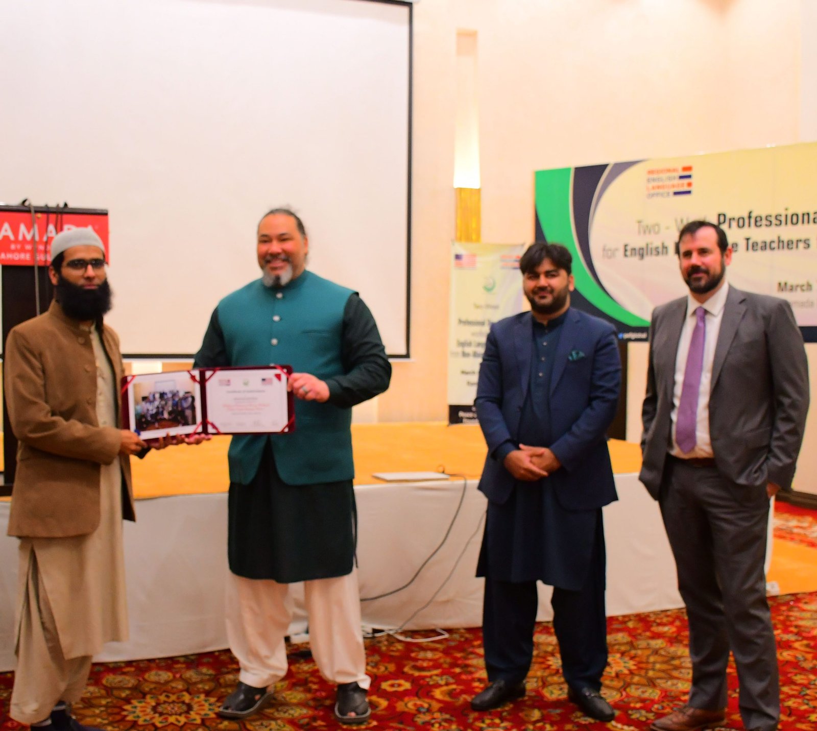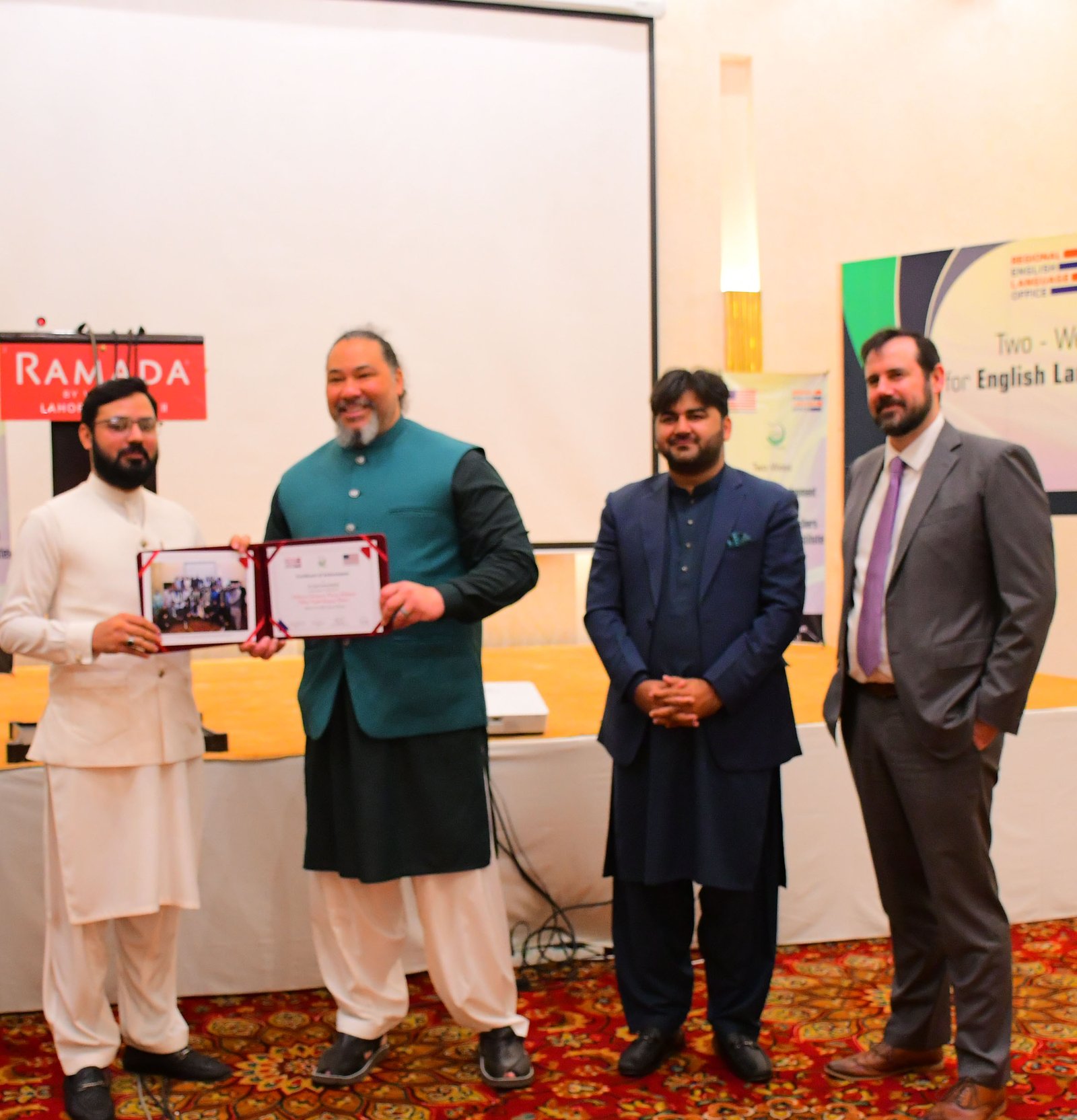 The U.S. Consul General William K. Makaneole, Deputy Public Affairs Officer Reid Howell, and English Programs Manager-Punjab Dr. Muhammad Iqbal participated in the opening and closing ceremonies. The U.S. Consul General distributed the certificates among the participants. At the end of the workshop the honorable Mr. William K. Makaneole, congratulated the trained teachers on successfully completing a two-week training program. Mr. William said, “English is an international language which opens the door of dialogue and discussion and in return help people to understand and appreciate different religions and culture. English language is a great tool all including religious scholars for teaching, preaching and interfaith dialogue to create interfaith harmony and tolerance which will ultimately help us for global peace.”