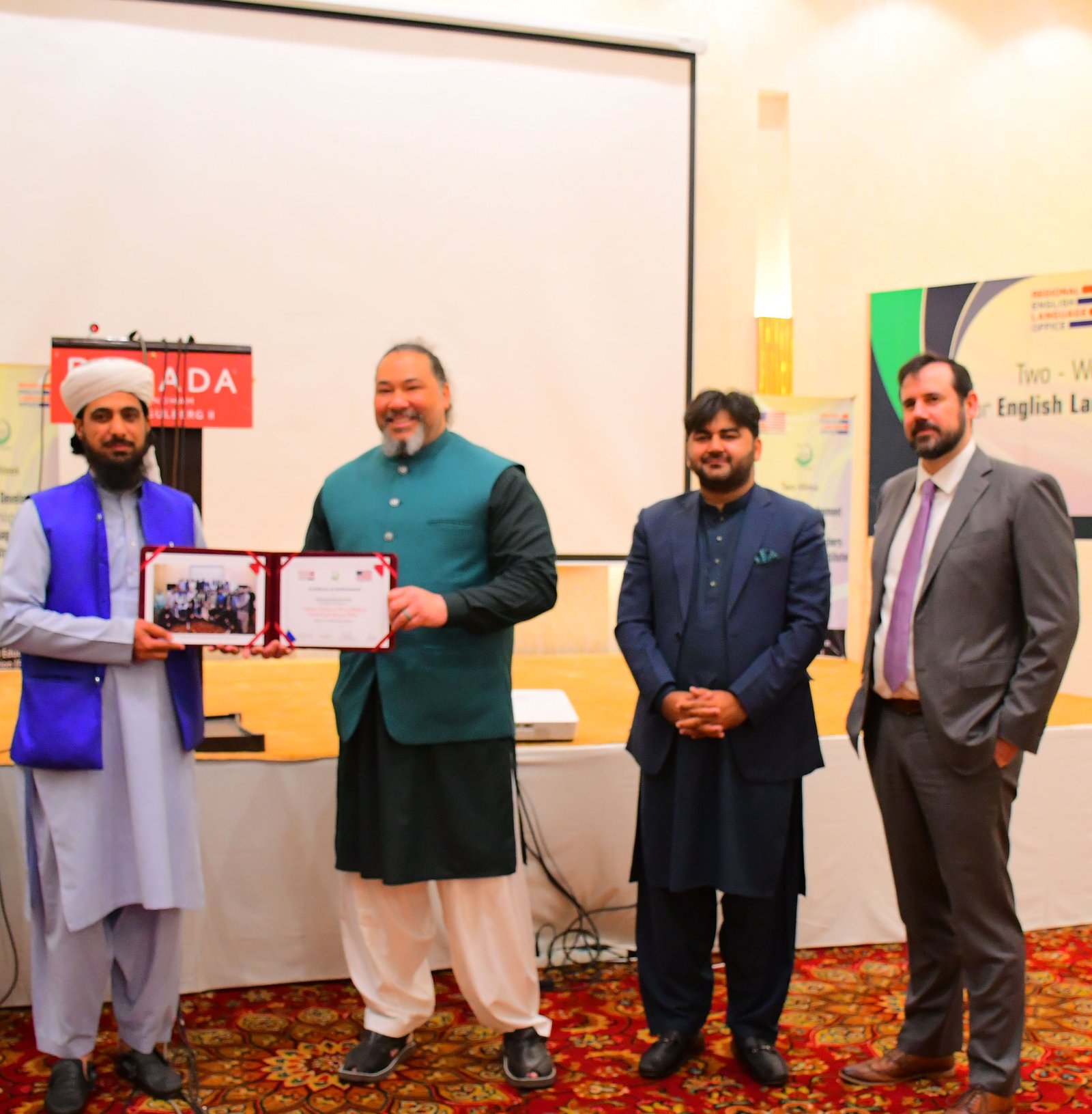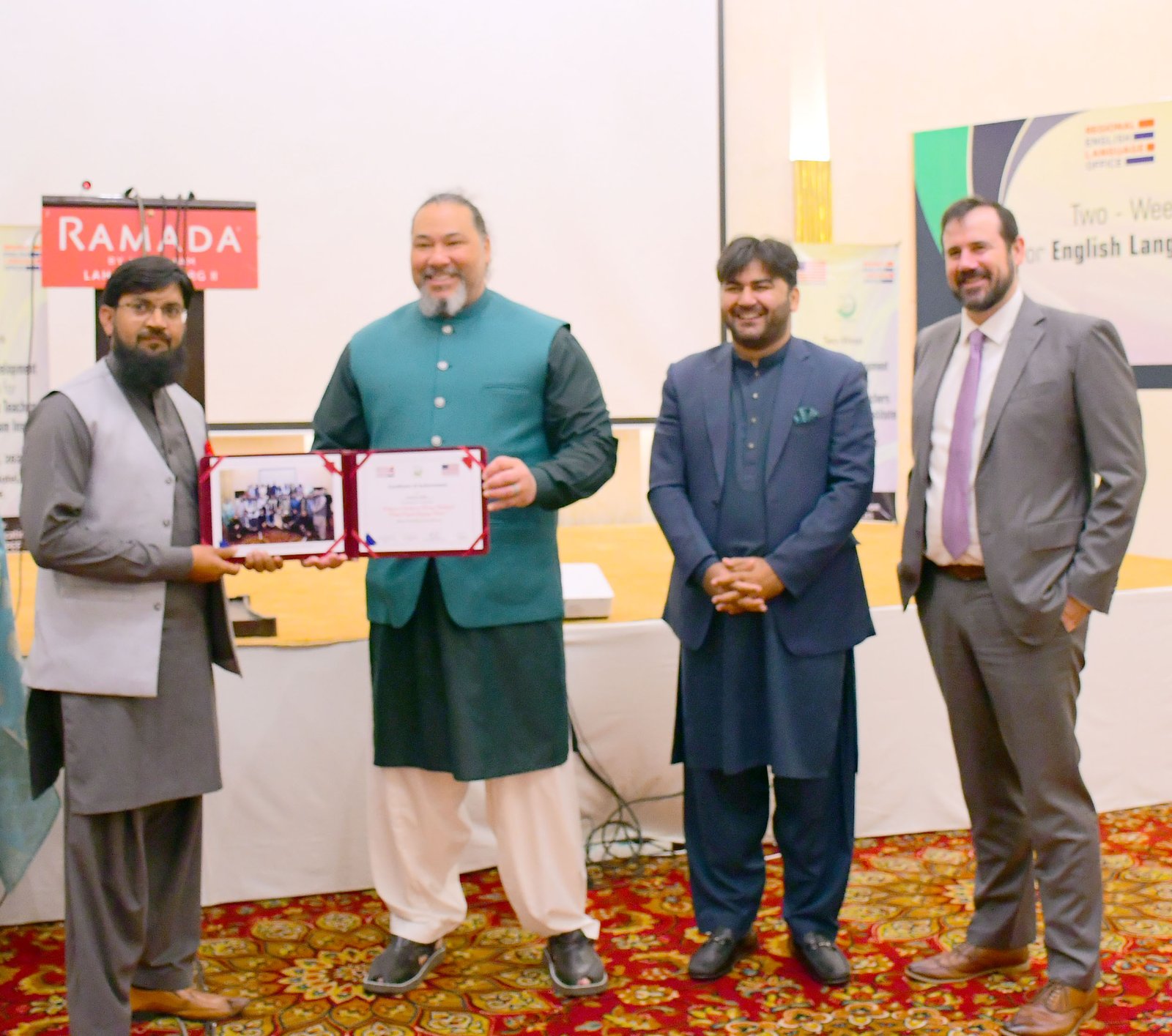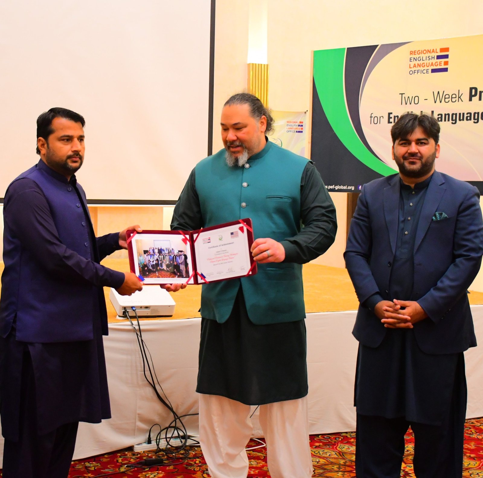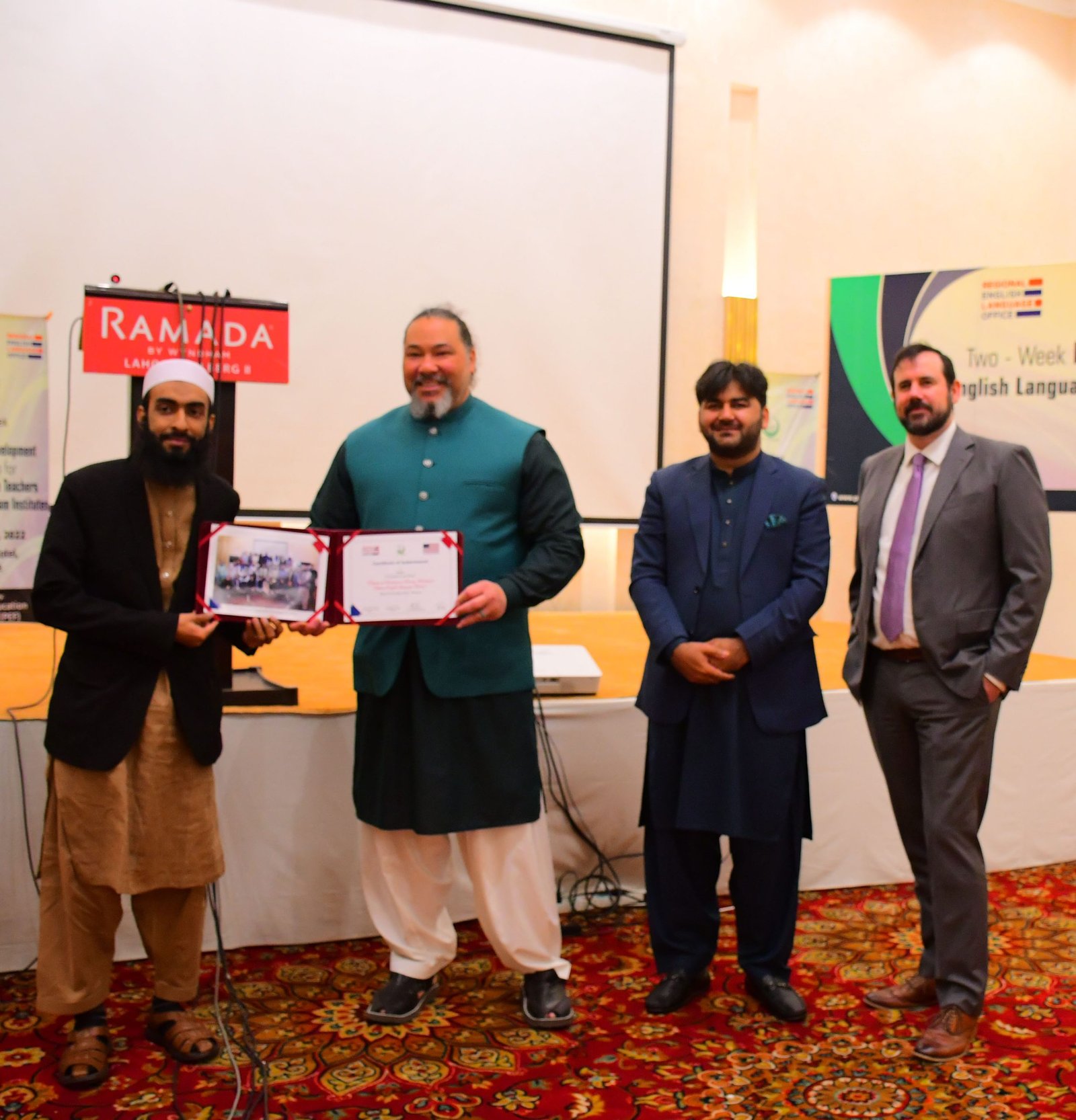 The U.S. Consul General William K. Makaneole, Deputy Public Affairs Officer Reid Howell, and English Programs Manager-Punjab Dr. Muhammad Iqbal participated in the opening and closing ceremonies. The U.S. Consul General distributed the certificates among the participants. At the end of the workshop the honorable Mr. William K. Makaneole, congratulated the trained teachers on successfully completing a two-week training program. Mr. William said, “English is an international language which opens the door of dialogue and discussion and in return help people to understand and appreciate different religions and culture. English language is a great tool all including religious scholars for teaching, preaching and interfaith dialogue to create interfaith harmony and tolerance which will ultimately help us for global peace.”