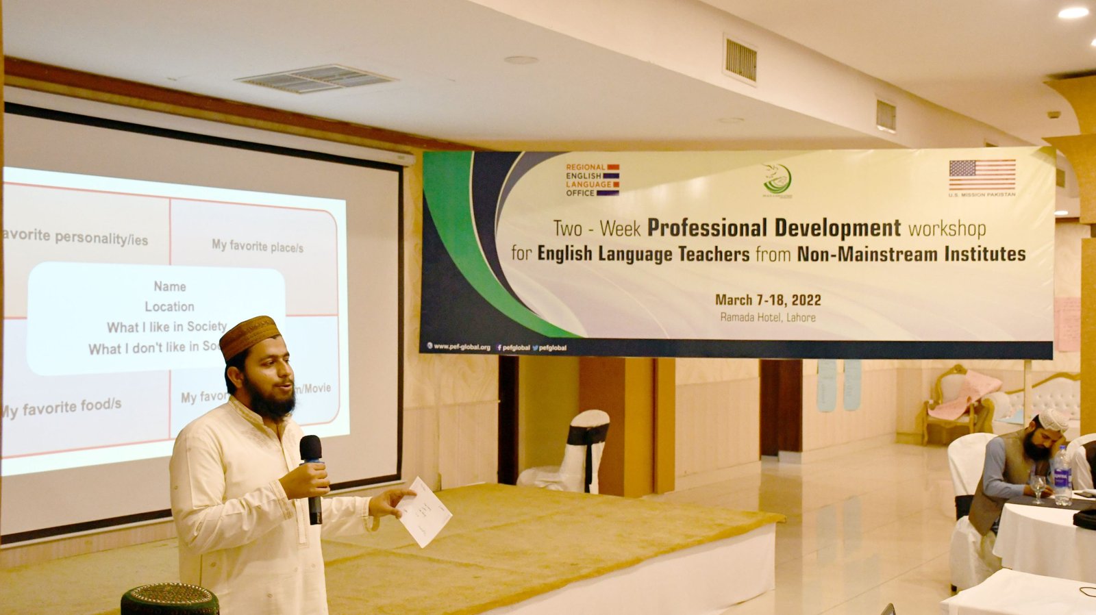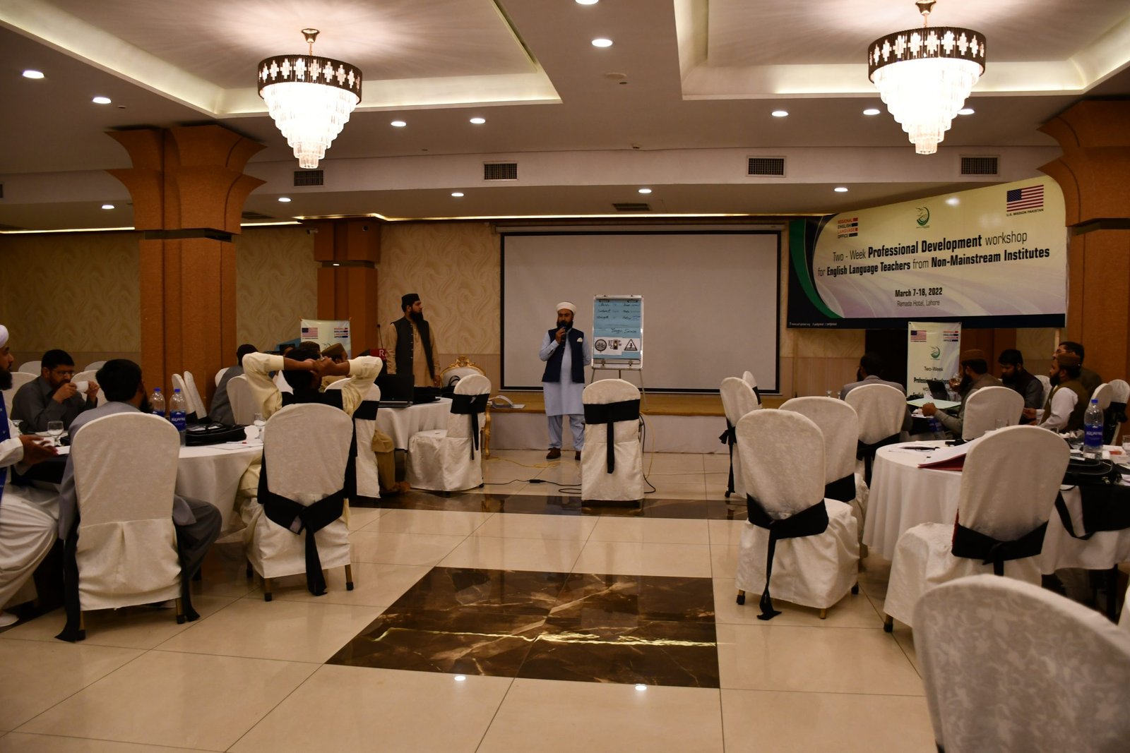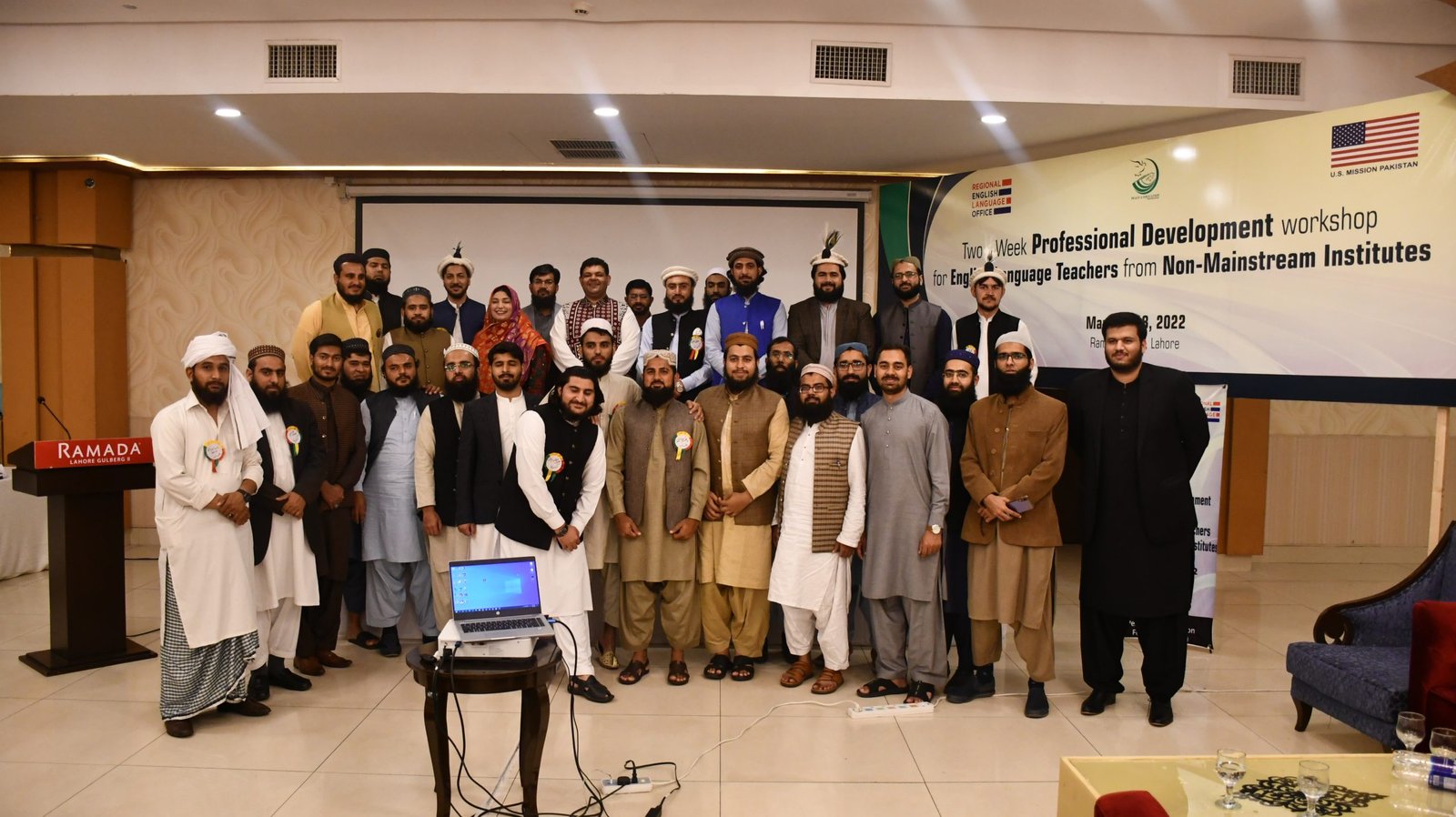 In collaboration with the Regional English Language Office at the U.S. Embassy in Islamabad Peace and Education Foundation (PEF) conducted third two-week training workshop for English Language teachers from non-mainstream institutes from 7-18 March, 2022 in Lahore. A total of 42 male Madrasah teachers from Punjab, Azad Jammu Kashmir (AJK) and Islamabad representing Muslim diversity including Barelvi, Deobandi, Salfi, Shia and Jamat e Islami participated in the workshop.
