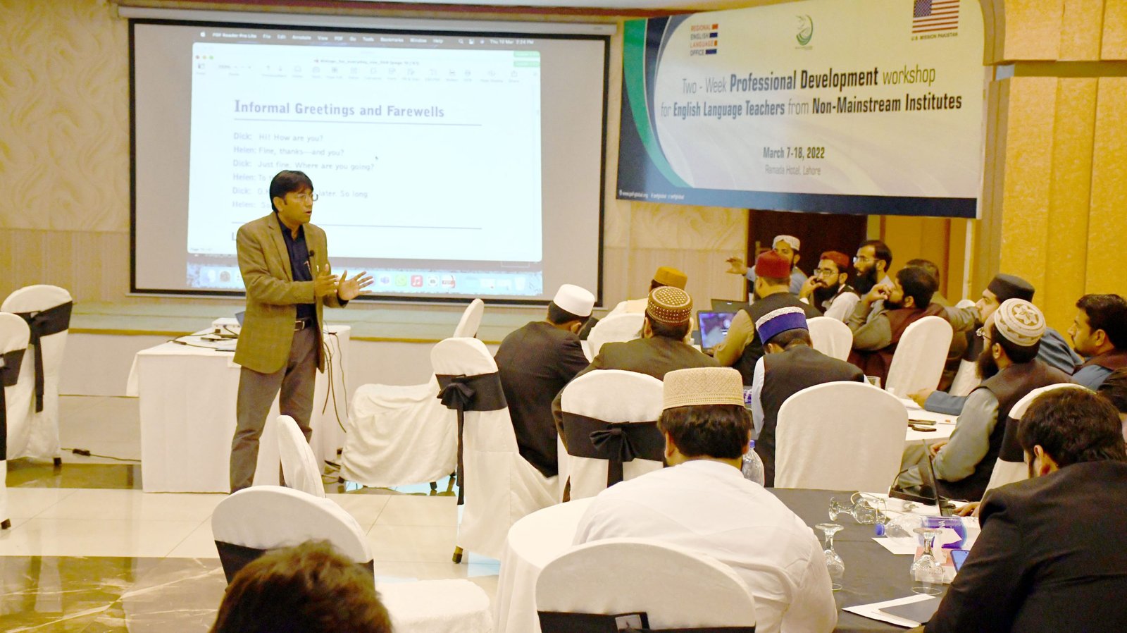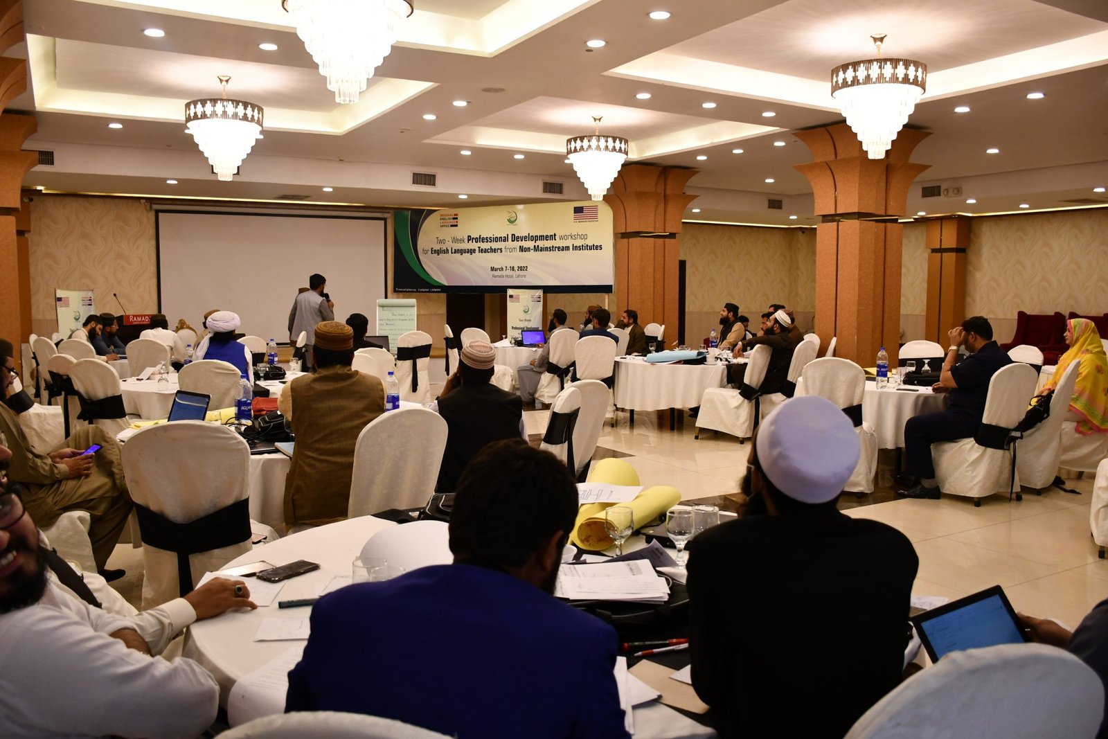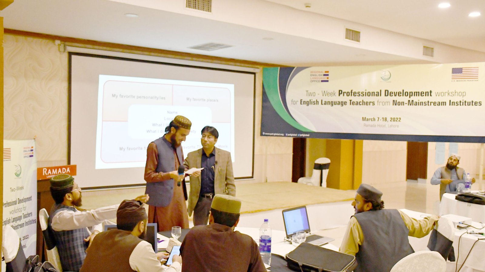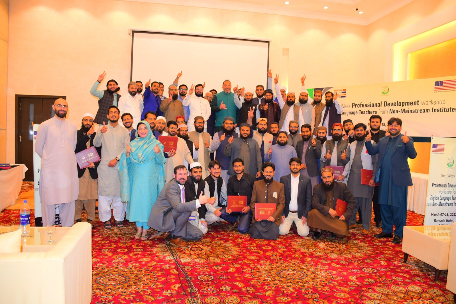 In collaboration with the Regional English Language Office at the U.S. Embassy in Islamabad Peace and Education Foundation (PEF) conducted third two-week training workshop for English Language teachers from non-mainstream institutes from 7-18 March, 2022 in Lahore. A total of 42 male Madrasah teachers from Punjab, Azad Jammu Kashmir (AJK) and Islamabad representing Muslim diversity including Barelvi, Deobandi, Salfi, Shia and Jamat e Islami participated in the workshop.