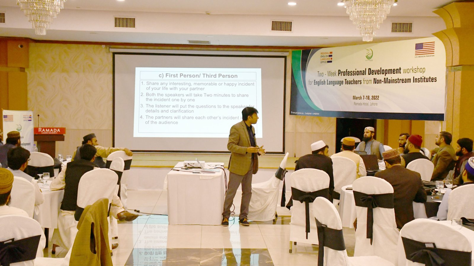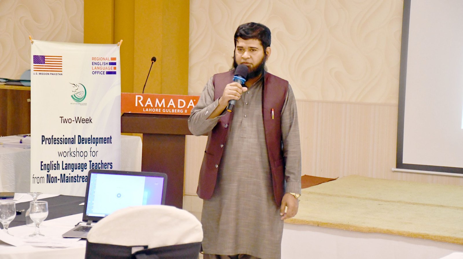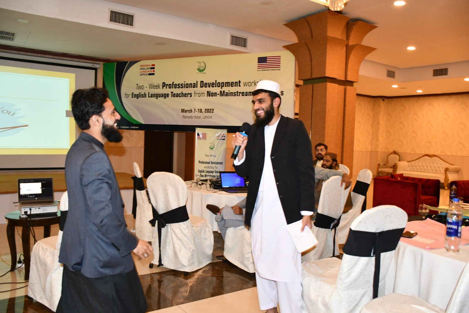 The U.S. English Language Specialist Dr. Luis Javier Pentón Herrera and Pakistani English Language Expert Muhammad Umer Azim teamed up to design and conduct the workshop. The workshop was participatory in nature and included integrated lessons with a variety of materials on the most important topics and content about teaching methodology, interactive activities covering listening, speaking, reading, writing and grammar were conducted. The participants did micro-teaching: they prepared and delivered 15-minute mini-lessons. The Pakistani trainer and PEF project Manager met one-on-one with the participants to work on lesson plan work/feedback.