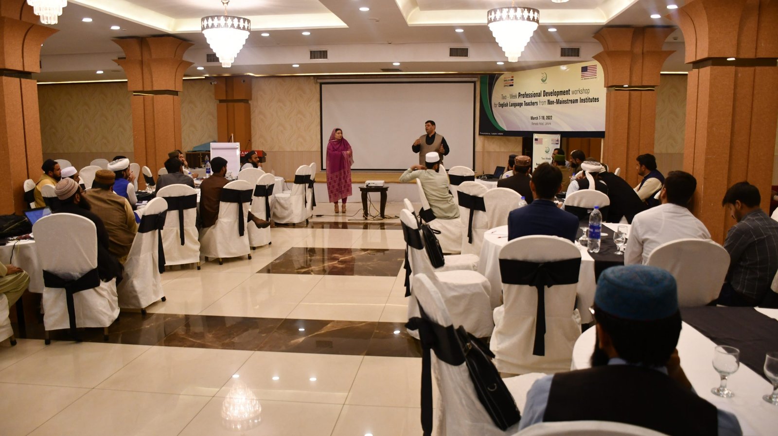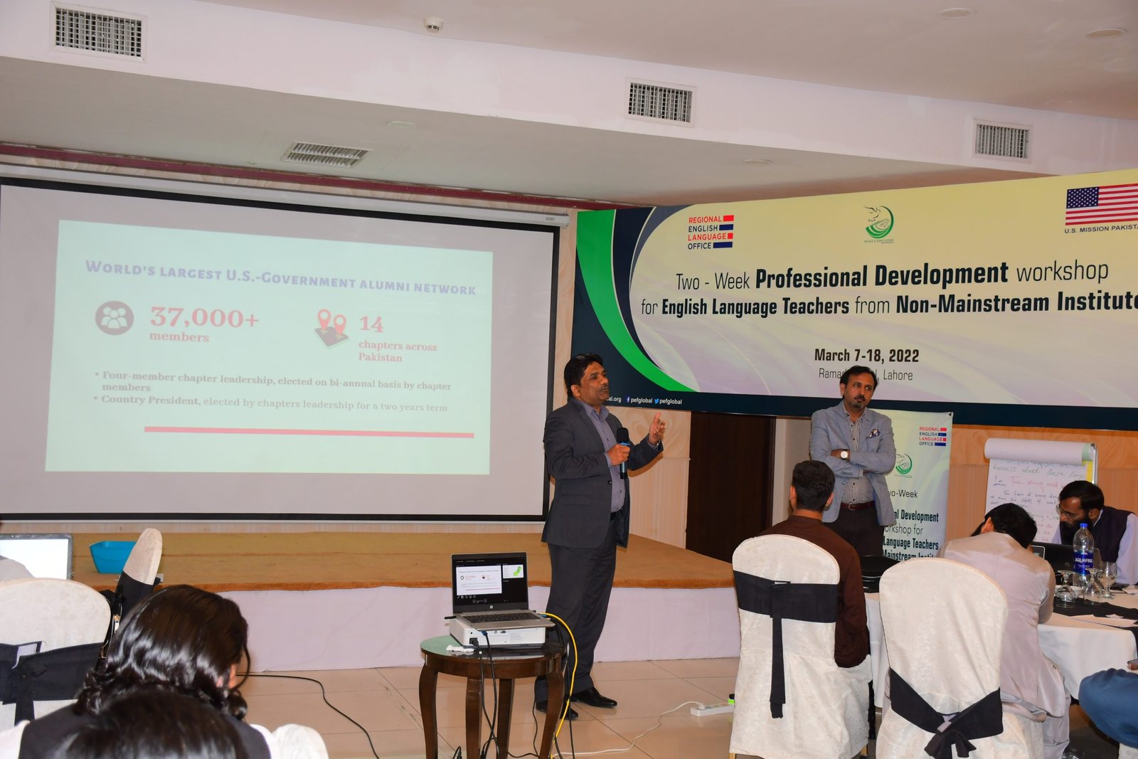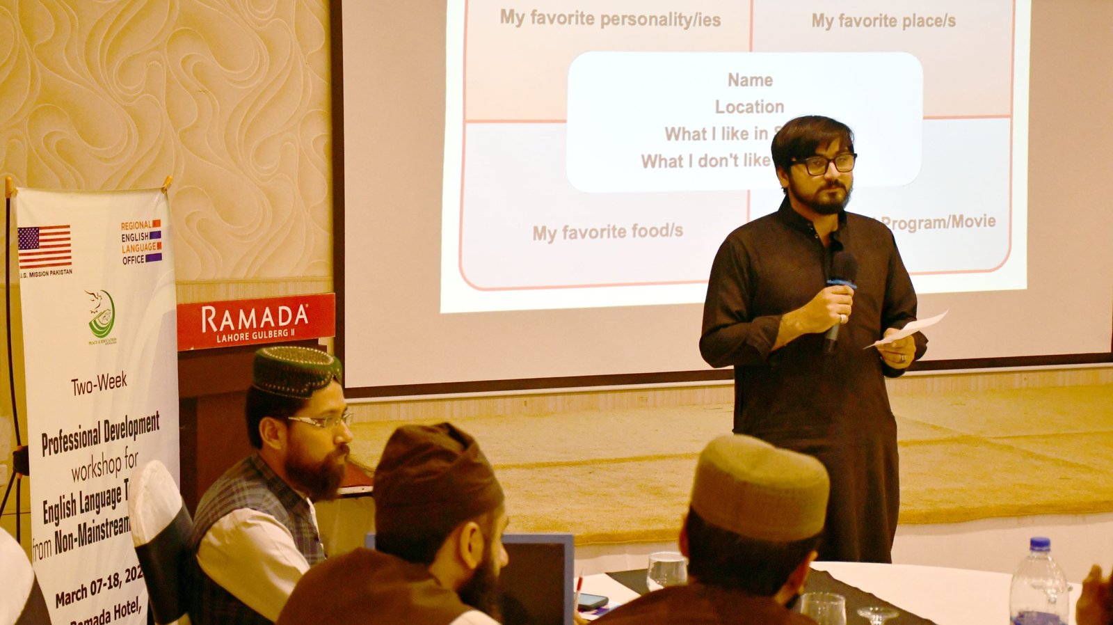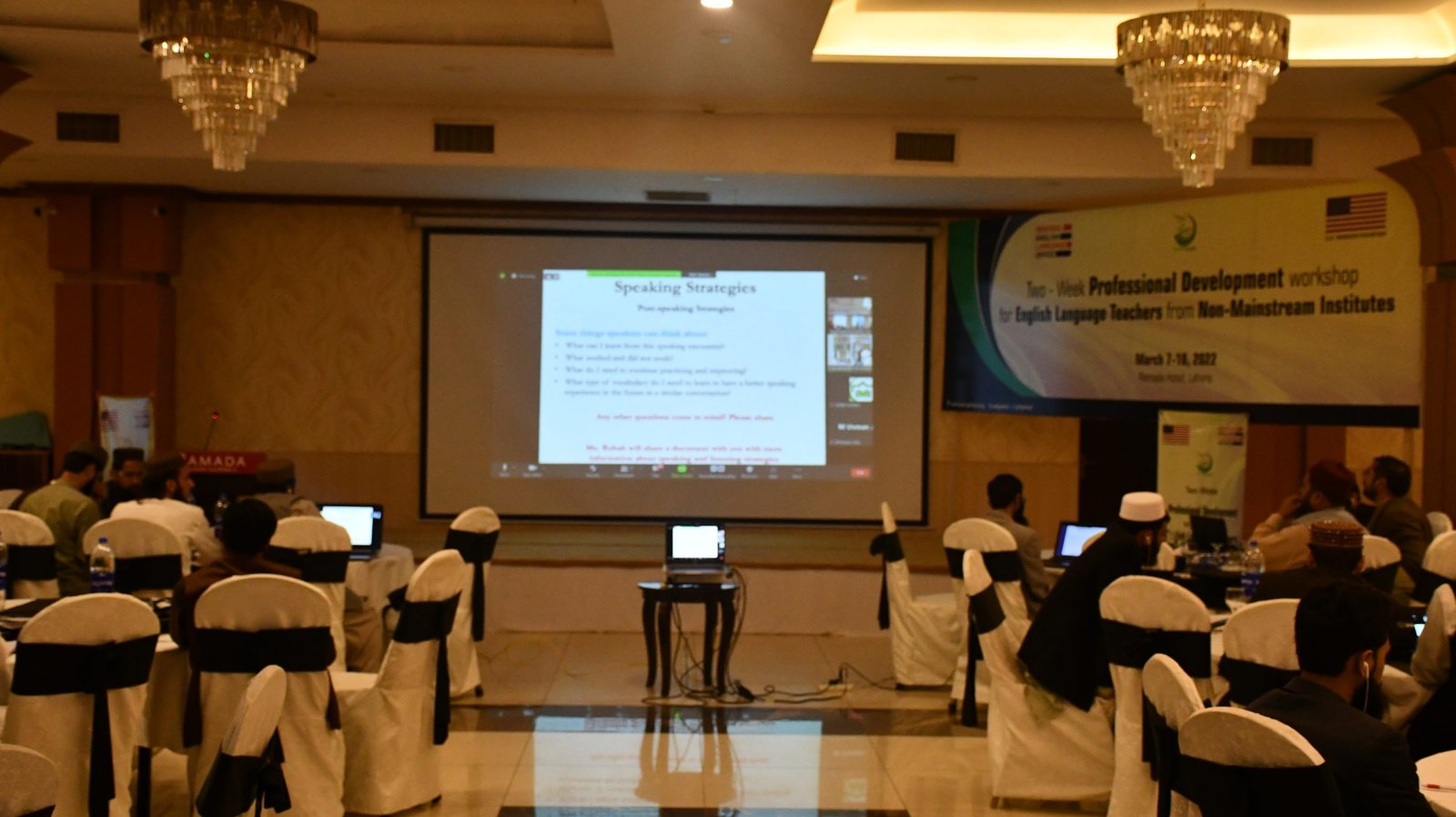 The U.S. English Language Specialist Dr. Luis Javier Pentón Herrera and Pakistani English Language Expert Muhammad Umer Azim teamed up to design and conduct the workshop. The workshop was participatory in nature and included integrated lessons with a variety of materials on the most important topics and content about teaching methodology, interactive activities covering listening, speaking, reading, writing and grammar were conducted. The participants did micro-teaching: they prepared and delivered 15-minute mini-lessons. The Pakistani trainer and PEF project Manager met one-on-one with the participants to work on lesson plan work/feedback.