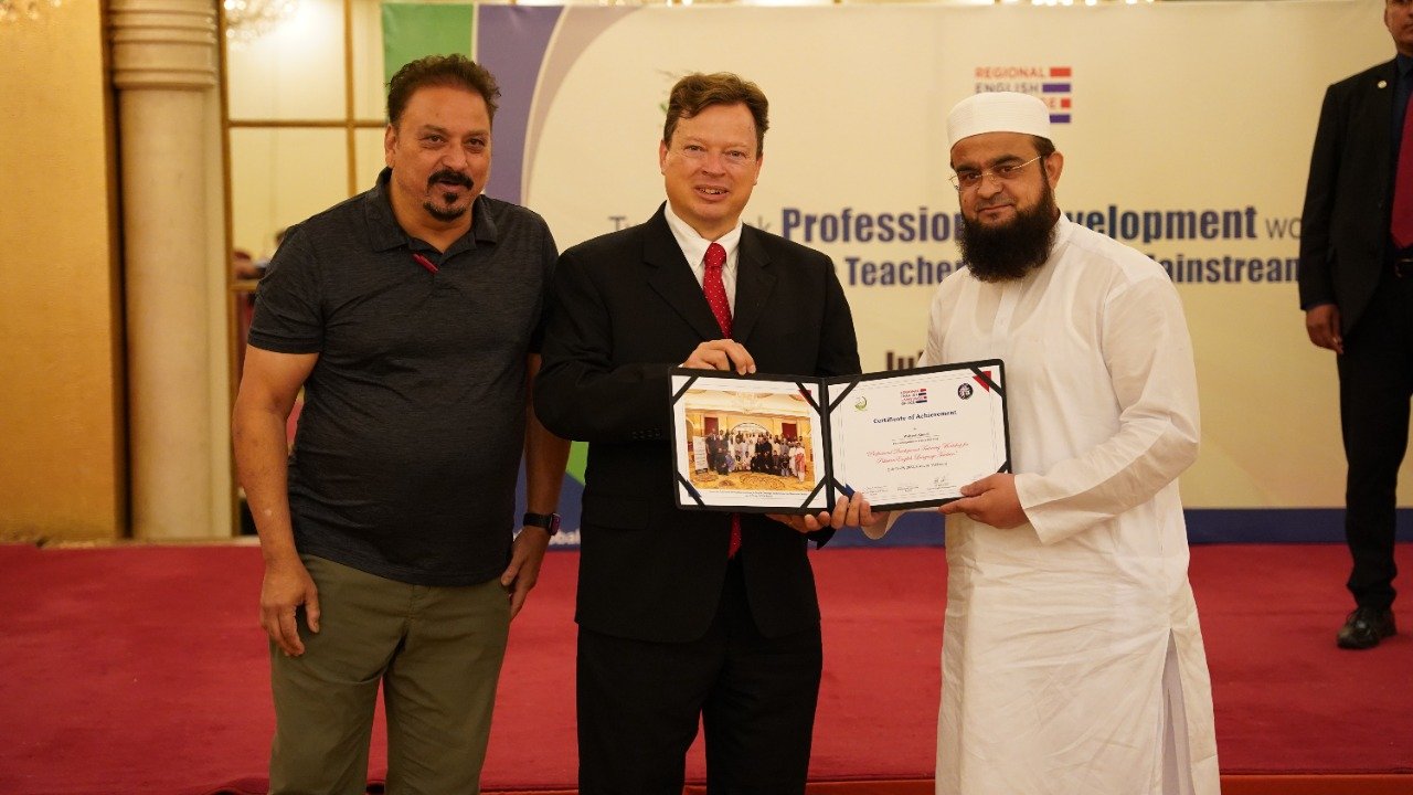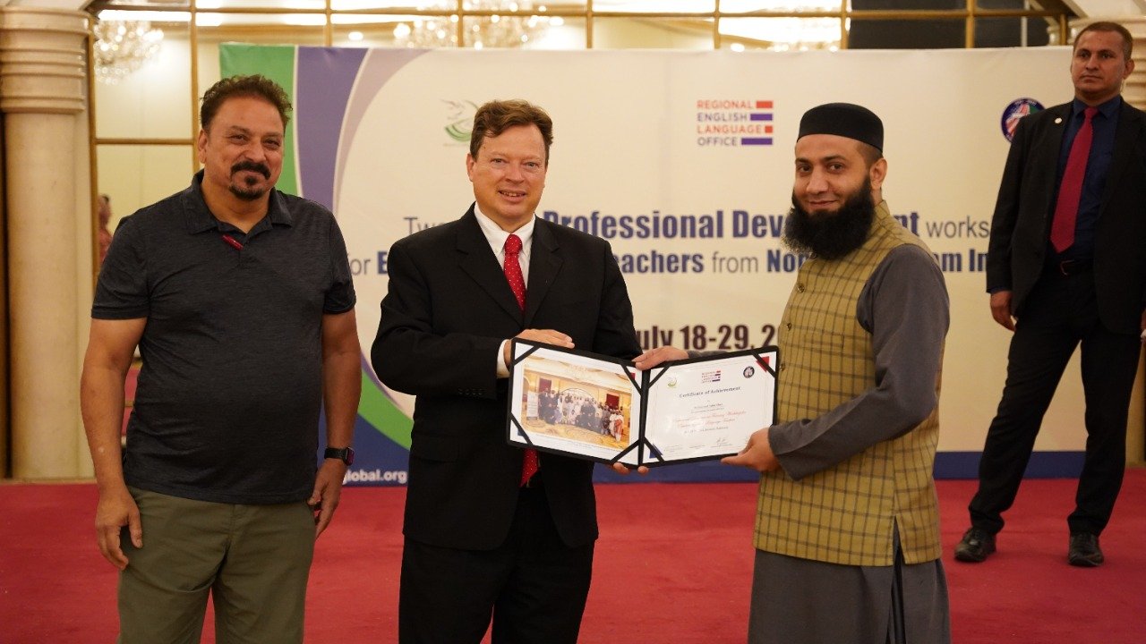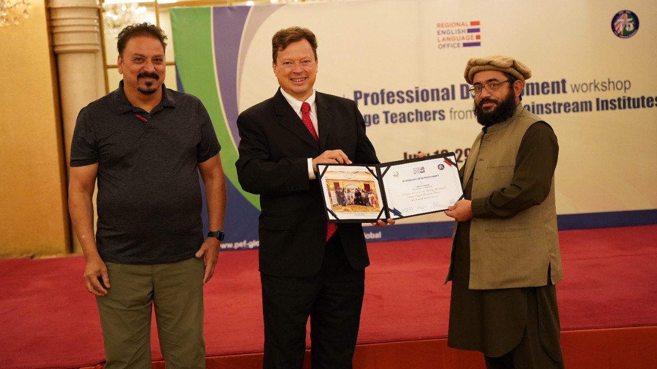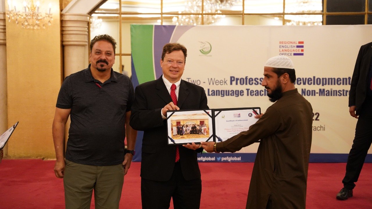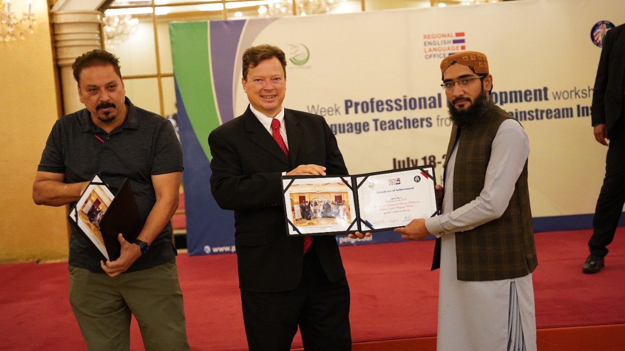 Public Affairs Officer (PAO) for the U.S. Consulate in Karachi, Mr. Lee McManis, participated in the closing ceremony and distributed the certificates among the participants. At the end of the workshop the honourable Mr. Lee, congratulated the trained teachers on successfully completing a two-week training program. He said “As we close this training program, it opens the door for you to experiment, apply and innovate the learned knowledge in your local context. For us, the success of any training program lies in the success stories we receive from the participants. I would like to take this opportunity to encourage you to go back to your institutions, apply the learned knowledge, tools and resources in your classrooms, and most importantly, share them with others in your community. Our star teachers are those who run informal workshops, webinars and training programs to cascade the information further to benefit the maximum English language teaching community of Pakistan. I am looking forward to hearing some great success stories from you all.