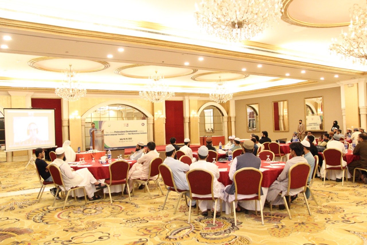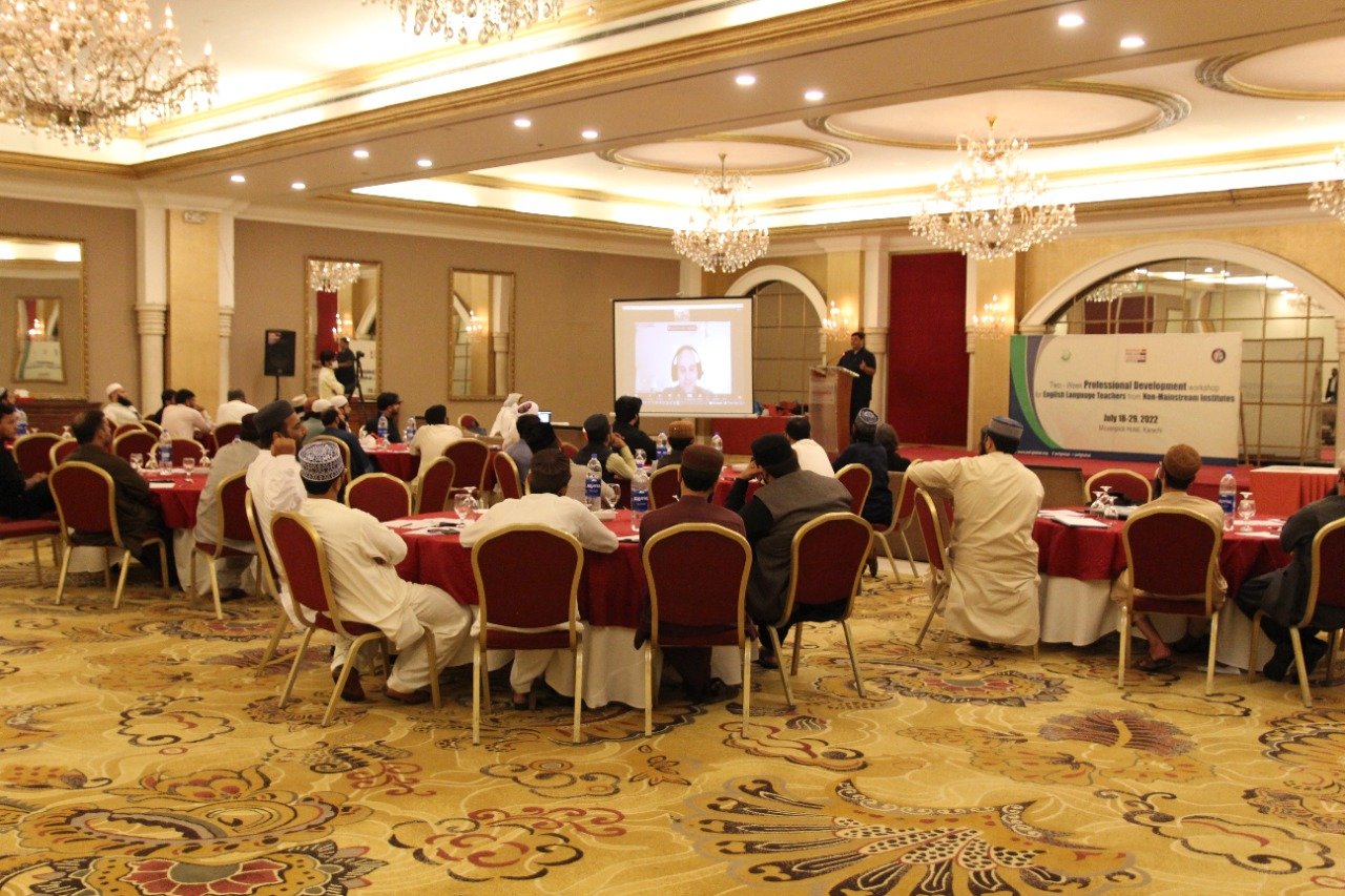 In collaboration with the Regional English Language Office at the U.S. Embassy in Islamabad Peace and Education Foundation (PEF) conducted Fourth two-week training workshop for English Language teachers from non-mainstream institutes from 18-29 July, 2022 in Karachi. A total of 40 male Madrasah teachers from Sindh, Balochistan and Gilgit Baltistan representing Muslim diversity including Barelvi, Deobandi, Salfi, Shia and Jamat e Islami participated in the workshop.