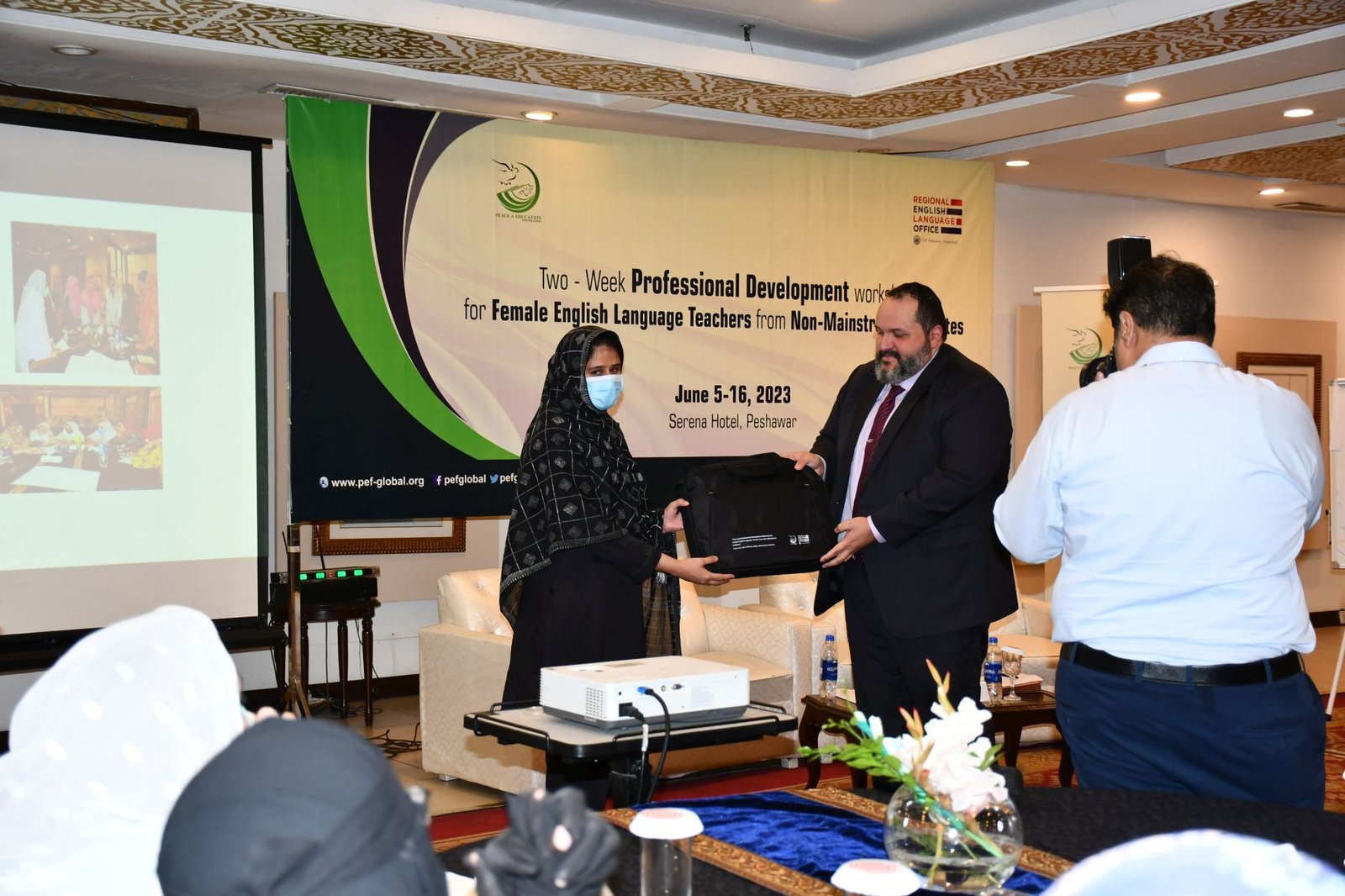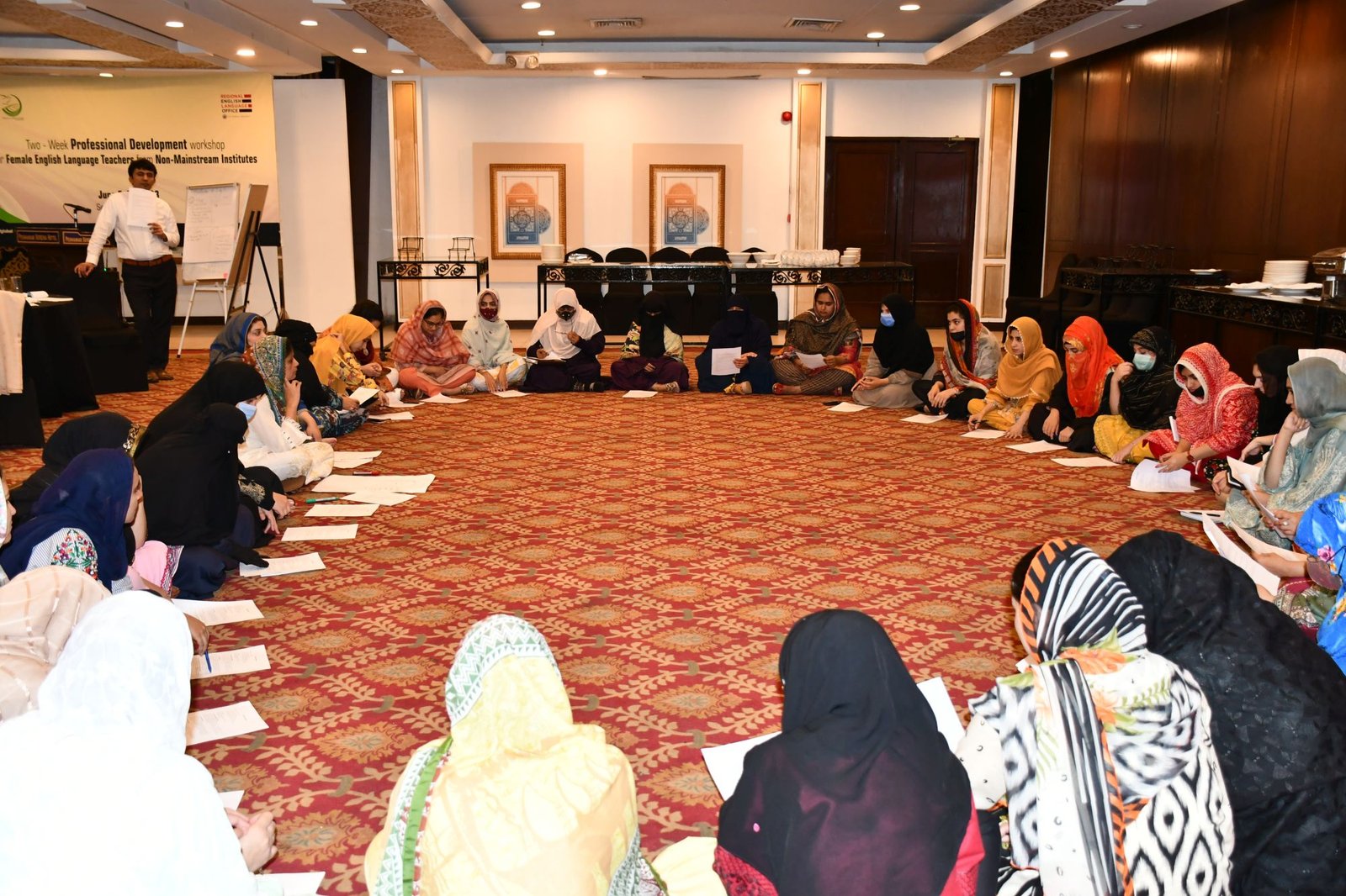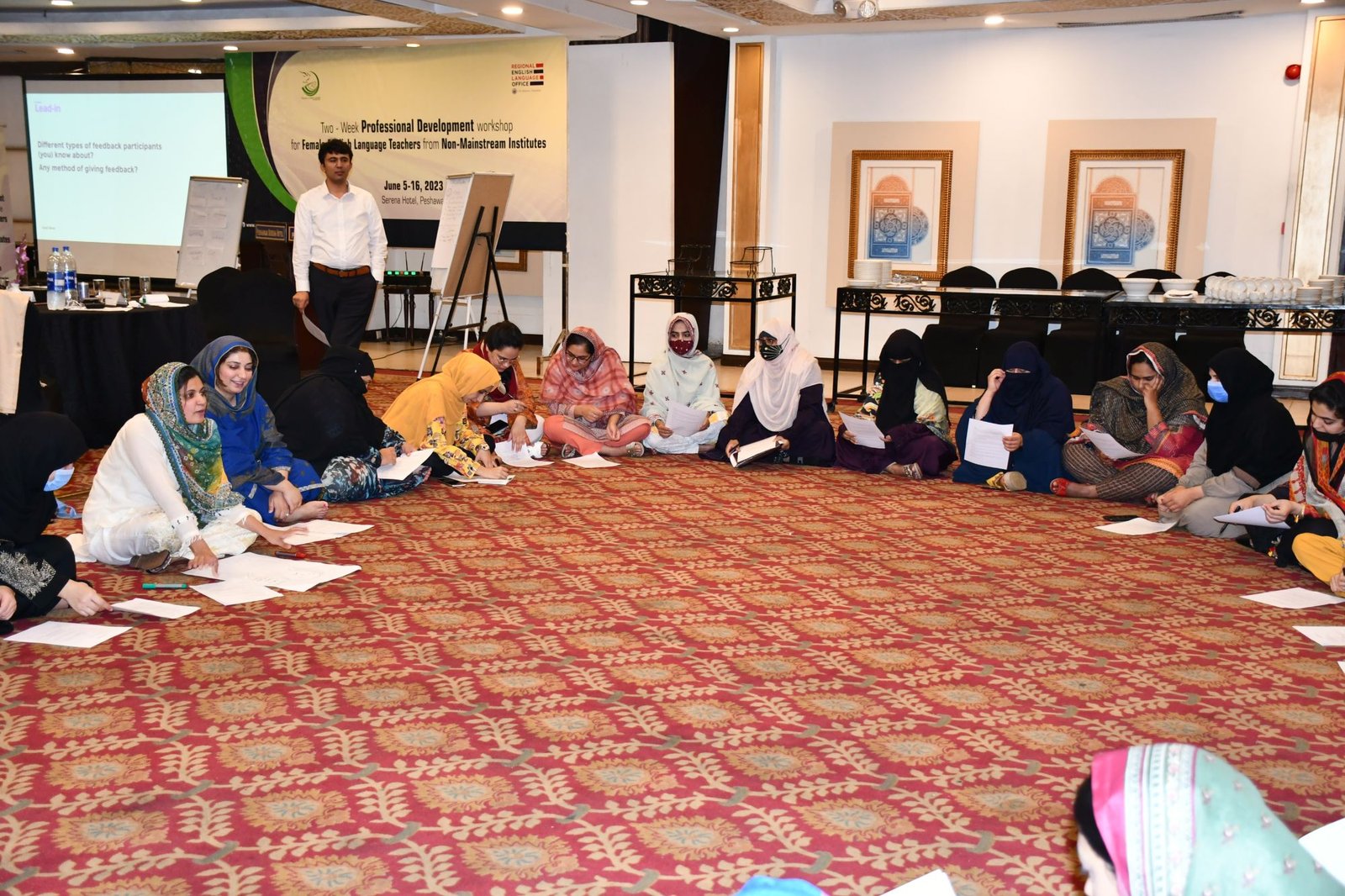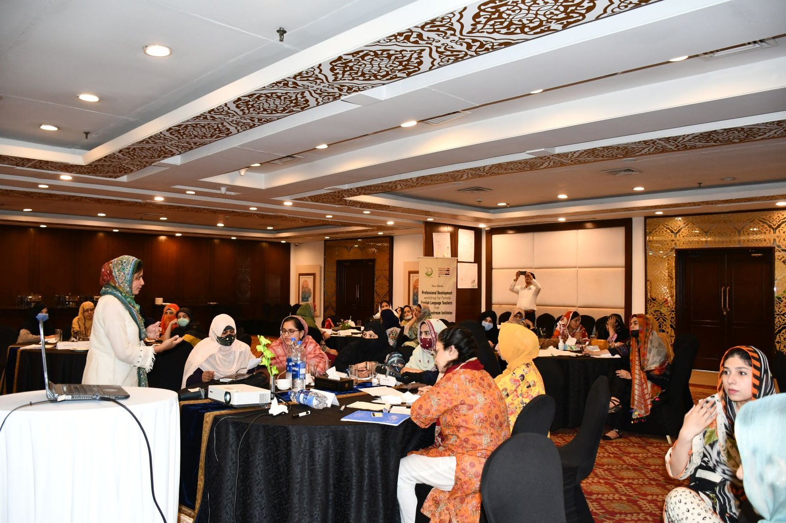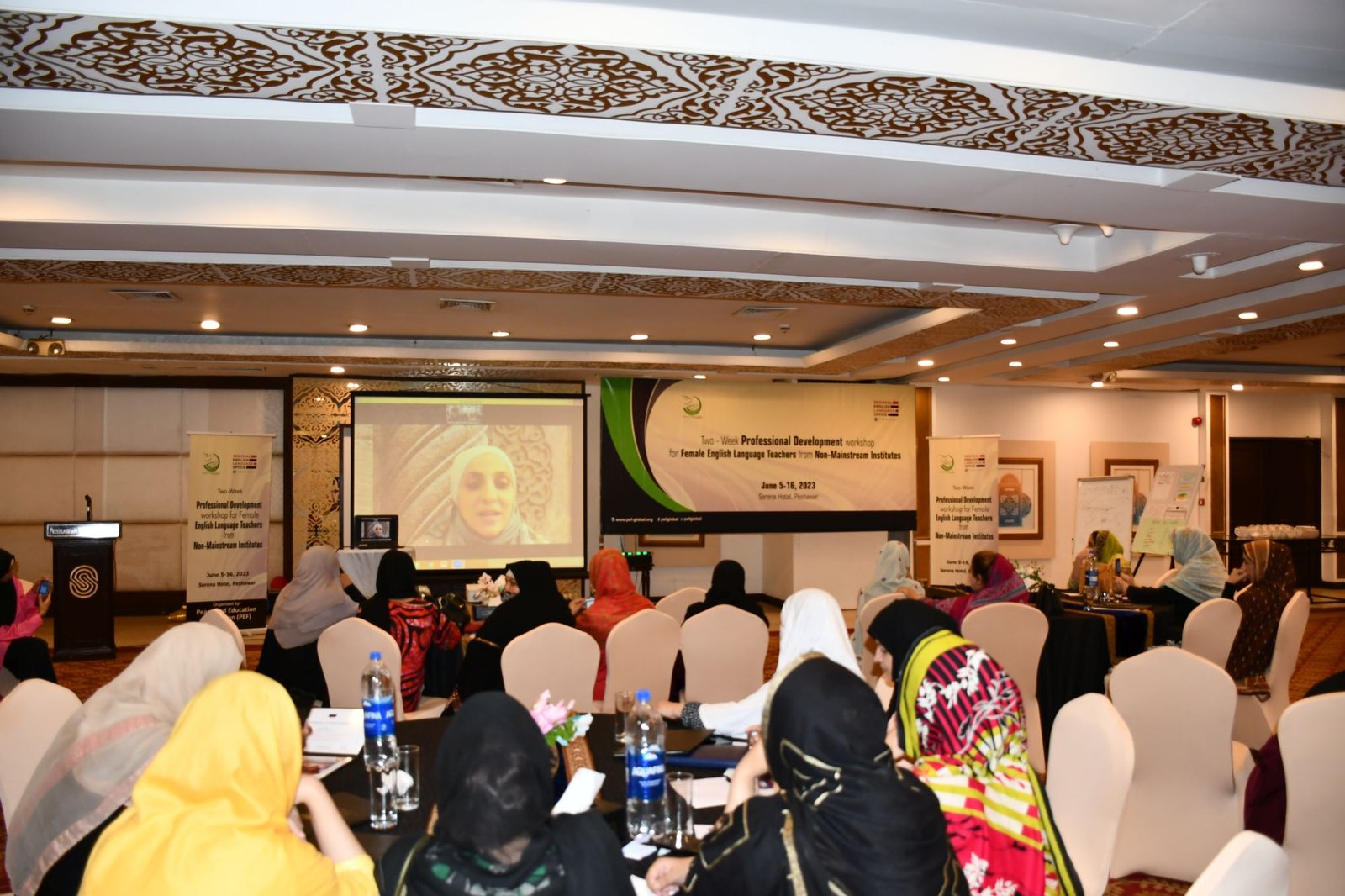 U.S. English Language Specialist Dr. Salma Waly teamed up with Pakistani English Language Expert Ms. Ismat Bahar to design and conduct the workshop. The workshop was participatory in nature and covered a wide range of topics including effective communication techniques, classroom management, integrated lessons with a variety of materials on the most important topics and content about teaching methodology, interactive activities covering listening, speaking, reading, writing and grammar were conducted. The participants did micro-teaching: they prepared and delivered 15-minute mini-lessons. The trainers and PEF project Manager met one-on-one with the participants to work on lesson plan work/feedback.