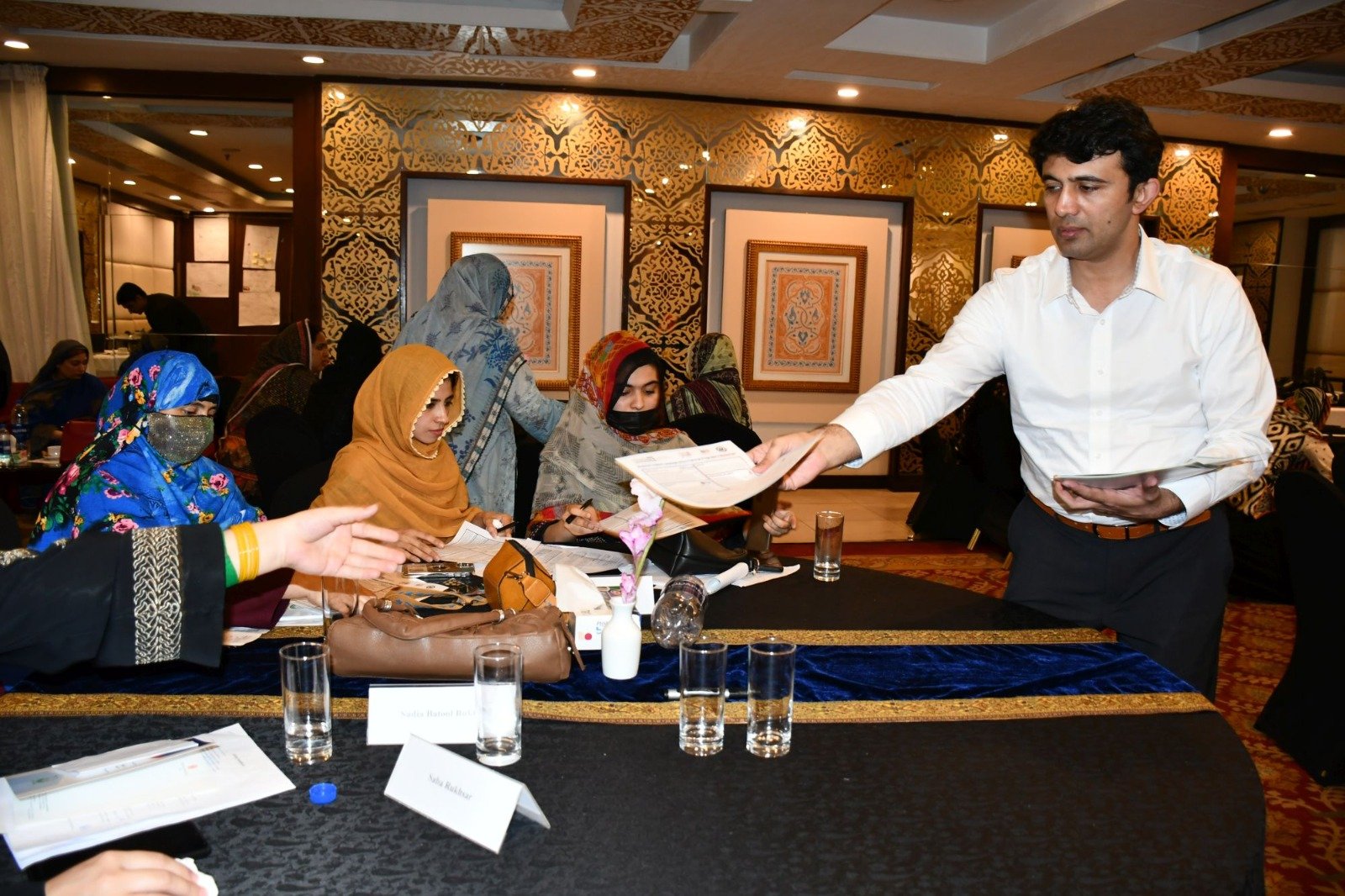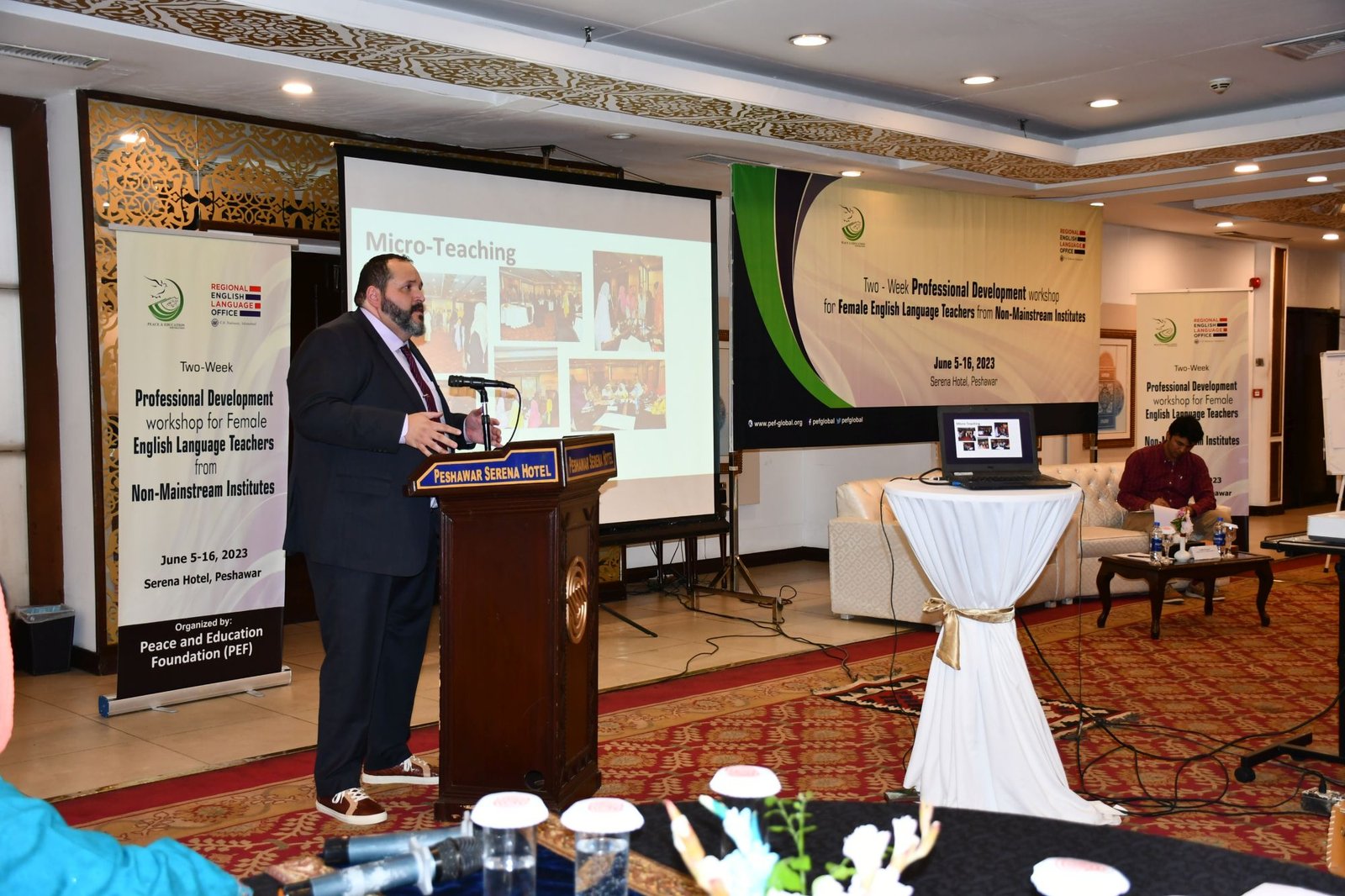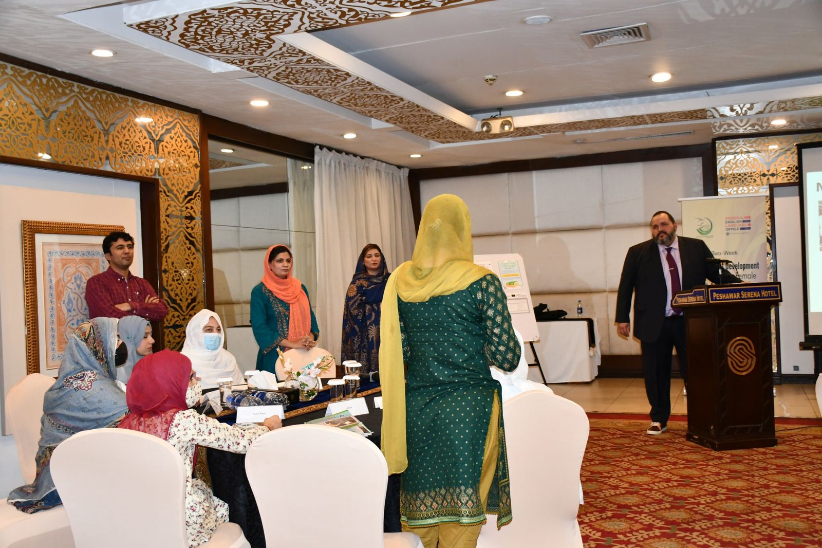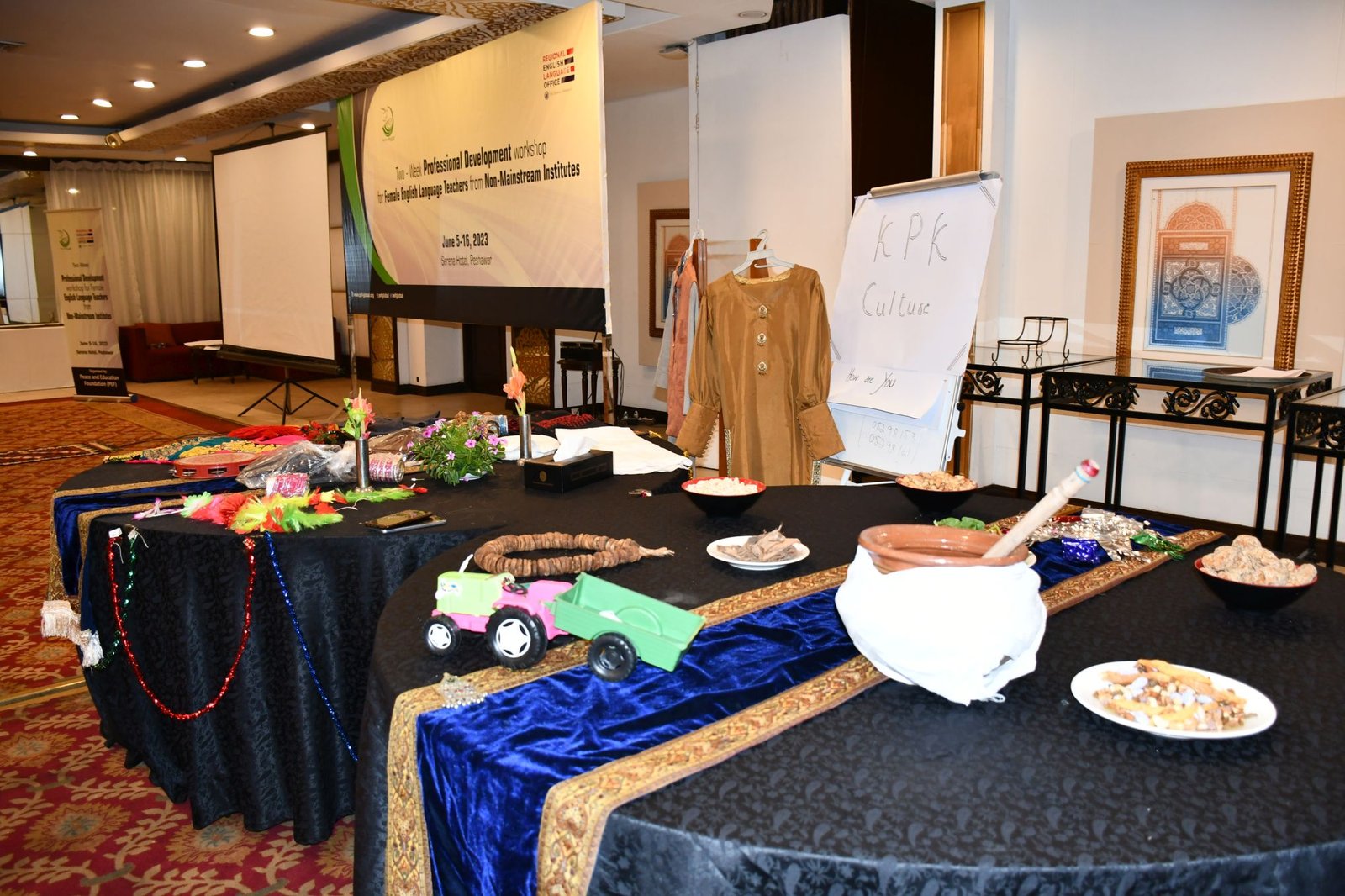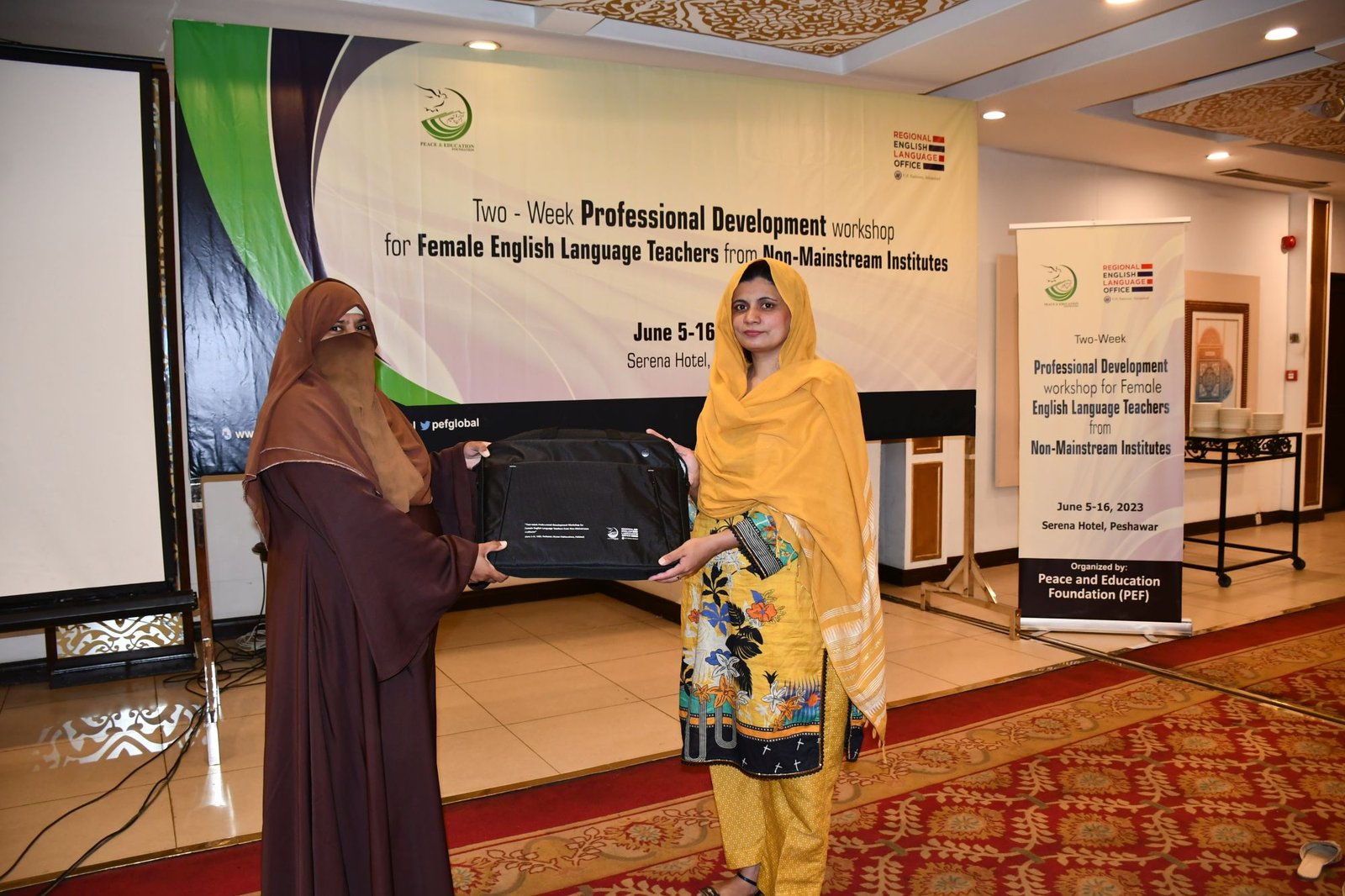 U.S. English Language Specialist Dr. Salma Waly teamed up with Pakistani English Language Expert Ms. Ismat Bahar to design and conduct the workshop. The workshop was participatory in nature and covered a wide range of topics including effective communication techniques, classroom management, integrated lessons with a variety of materials on the most important topics and content about teaching methodology, interactive activities covering listening, speaking, reading, writing and grammar were conducted. The participants did micro-teaching: they prepared and delivered 15-minute mini-lessons. The trainers and PEF project Manager met one-on-one with the participants to work on lesson plan work/feedback.