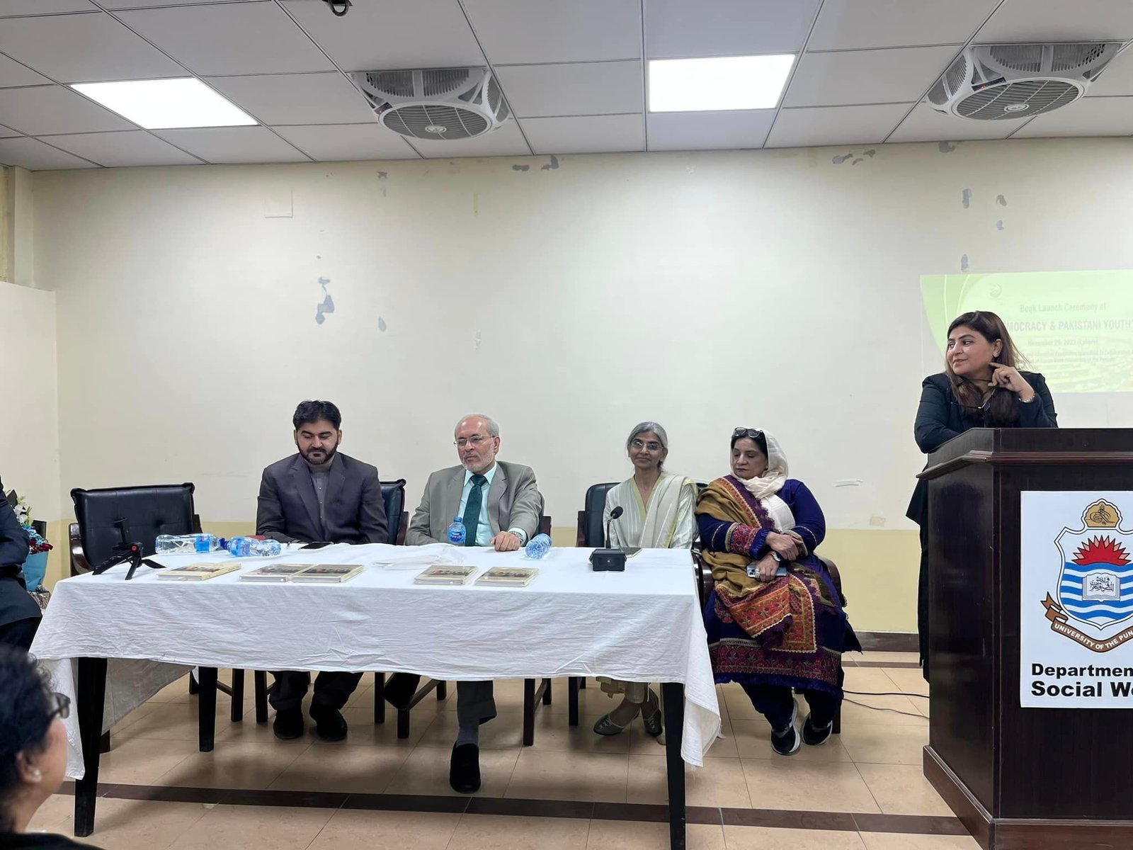 Peace and Education Foundation organized the book launch ceremony of its latest publication “Democracy and Pakistani Youth” at Punjab University campus in collaboration with Social Work Department on November 29, 2023.