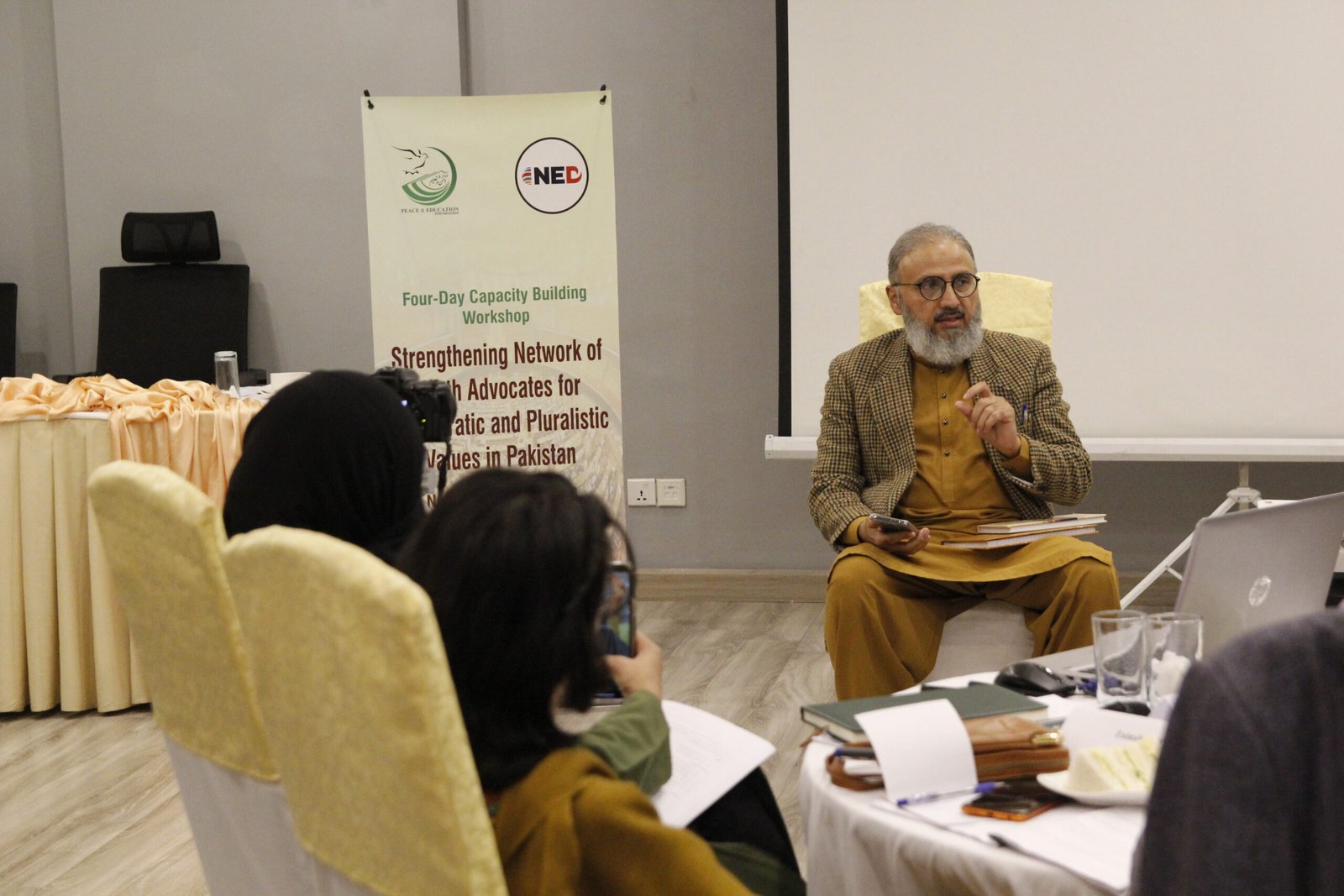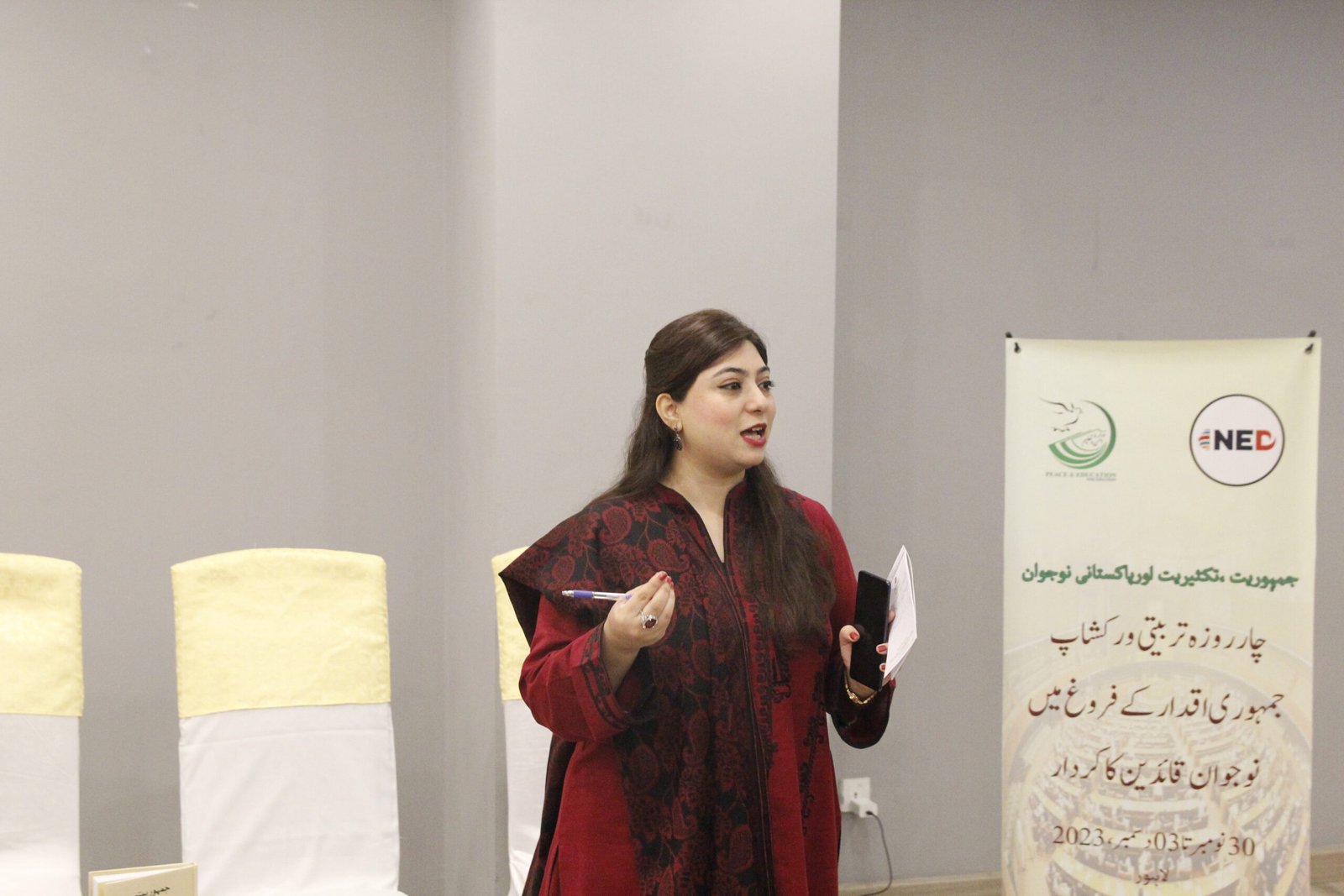 Lahore, Pakistan – December 03, 2023: The Peace and Education Foundation (PEF) conducted a phenomenal four-day workshop on the capacity building of youth hailing from Punjab’s different districts. These young participants hailed from various backgrounds including, religio-political parties, madrassas, social work, and media. This dedicated cohort has been equipped with the essential knowledge and values of democracy, enabling them to comprehend their pivotal role in shaping the democratic landscape of Pakistan