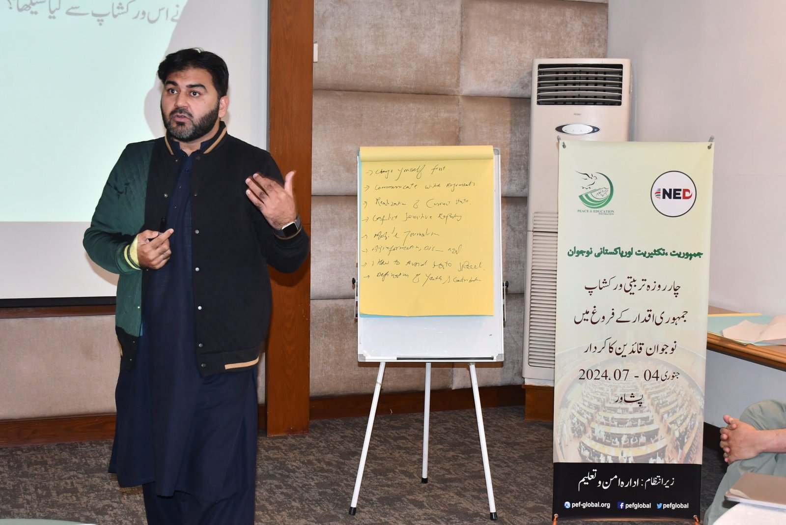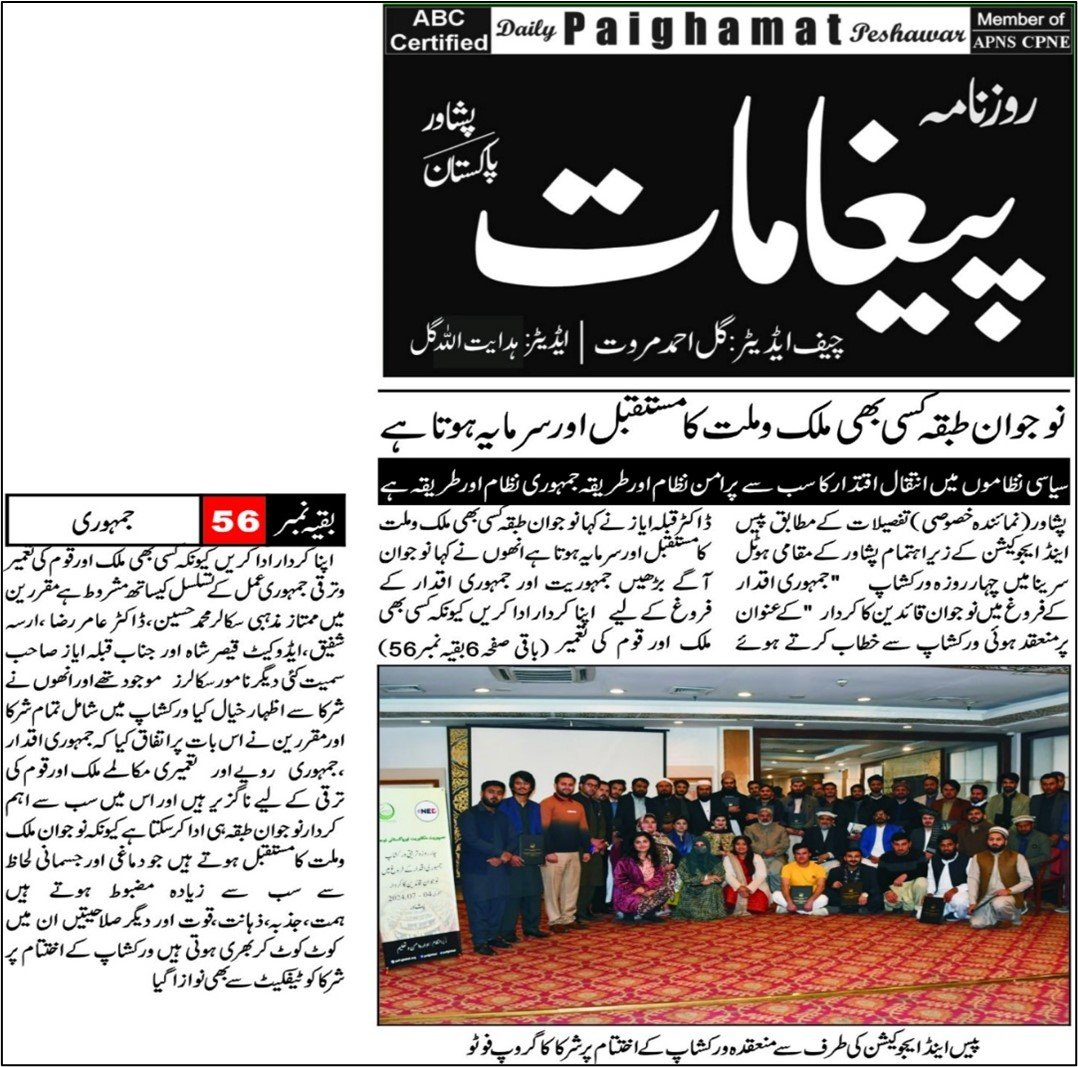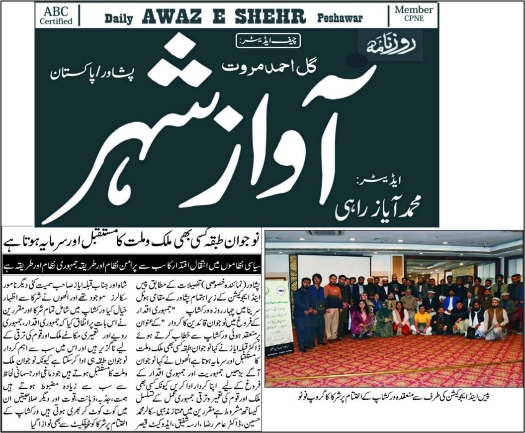 Peshawar, Pakistan – January 07, 2024: The Peace and Education Foundation (PEF) conducted a phenomenal four-day workshop on the capacity building of youth hailing from Khyber Pakhtunkhwa’s different districts. These young participants hailed from various backgrounds including, religio-political parties, madrassas, social work, and media. This dedicated cohort has been equipped with the essential knowledge and values of democracy, enabling them to comprehend their pivotal role in shaping the democratic landscape of Pakistan.