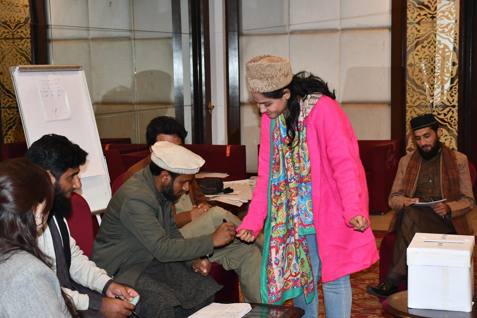 The workshop’s inaugurated warmly by Ms. Irsa Shafiq, the project manager, share the project’s objectives and scope, providing a comprehensive overview of key terminologies. She also led sessions on developing seed projects aimed at increasing youth’s political participation in Pakistan. Dr. Muhamad Hussain, author of the recently launched book “Democracy and Pakistani Youth,” facilitated engaging reading circles, discussions, and experiential activities to explore different aspects of democracy.