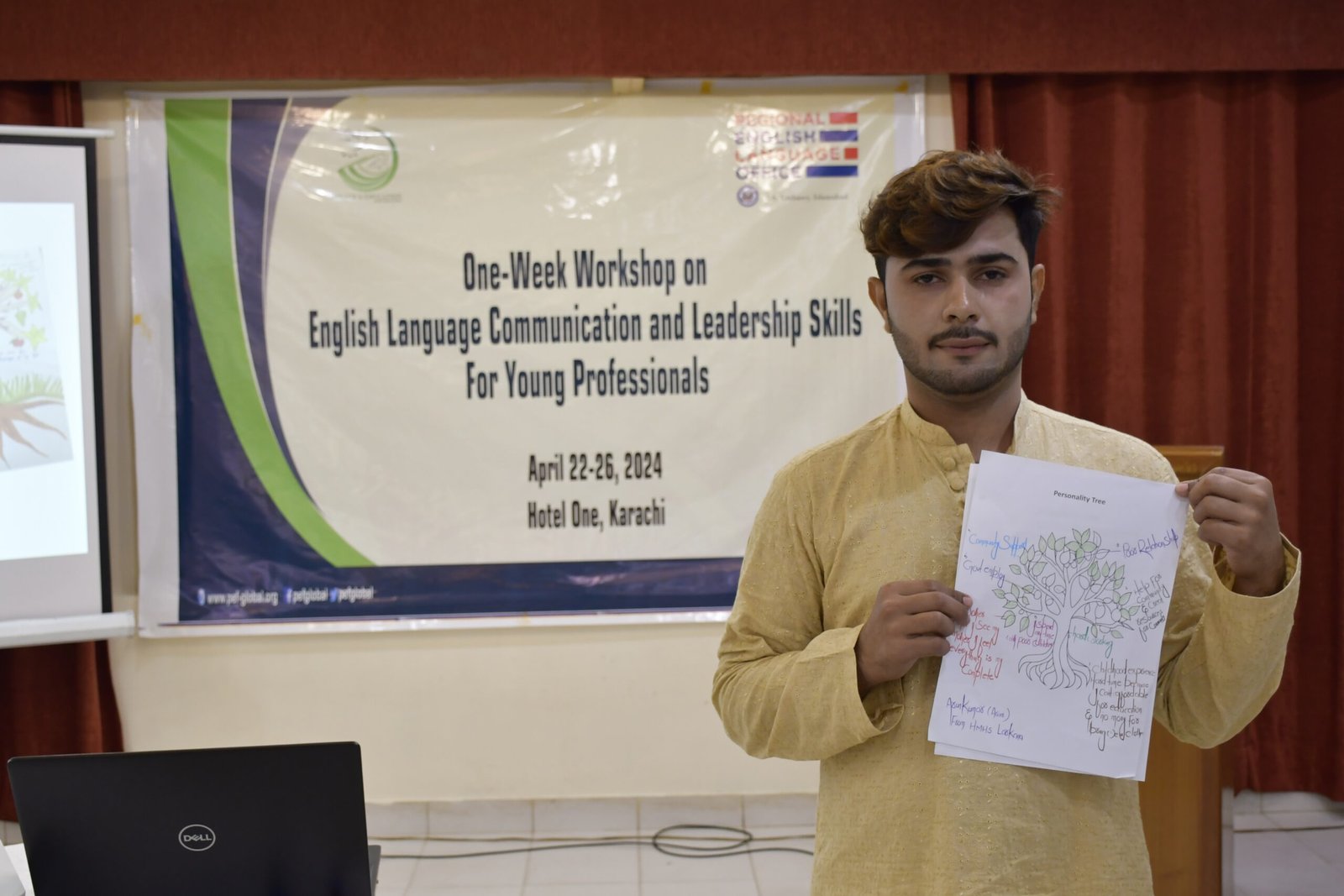 Participating in one week training workshop focused on English language communication and leadership skills was an enriching experience that equipped me with a diverse set of valuable competencies. Throughout the workshop, I enquired into various areas including communication strategies, interview tactics, CV writing techniques, effective teamwork dynamics, leadership principles, as well as photography and videography basics. I am particularly optimistic about the impact these newly acquired skills will have on advancing my professional journey. The exceptional support and guidance from both the management and trainers played a pivotal role in fostering an atmosphere conducive to learning. Their expertise, coupled with a positive attitude, not only facilitated skill development but also contributed significantly to the overall success of the workshop. I am genuinely thankful for the opportunity and deeply content with the transformative experience it provided. Tariq Ali from Larkana, Sindh